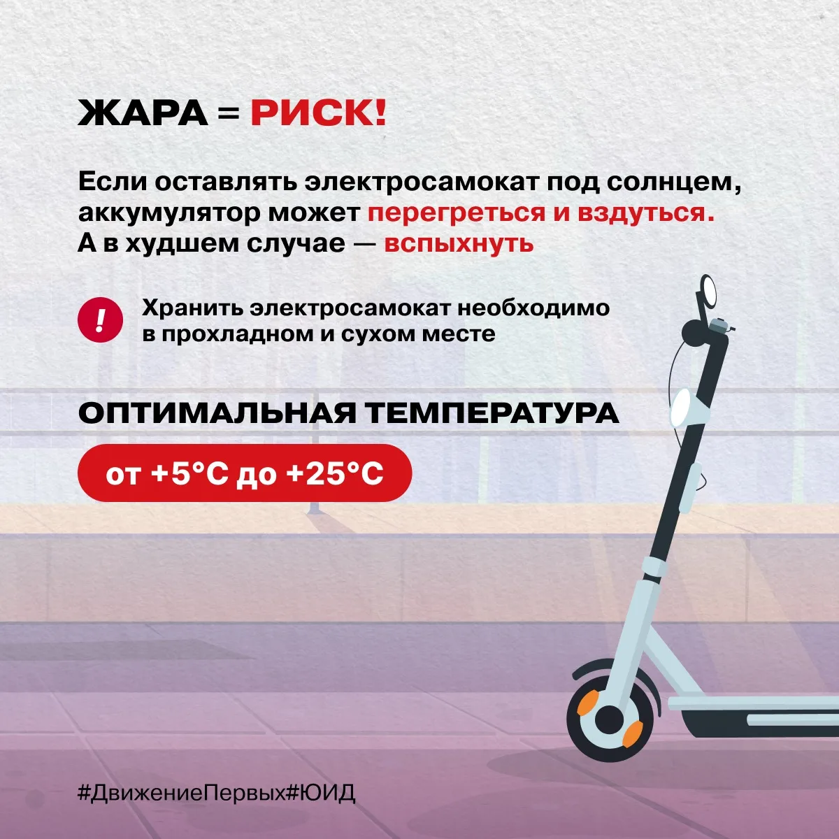 Электросамокаты перегреваются быстрее, чем кажется. Как этого избежать? Читай на карточках советы!