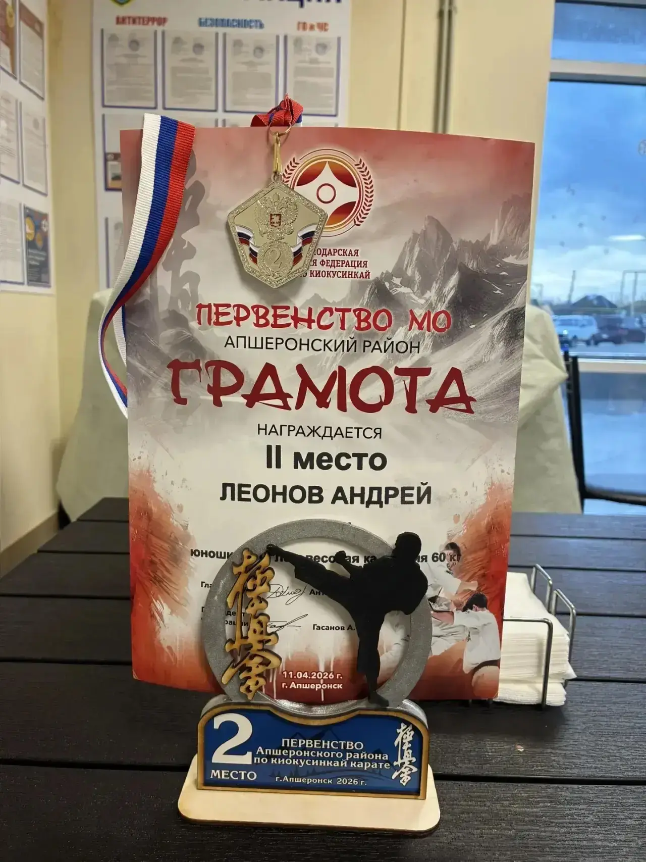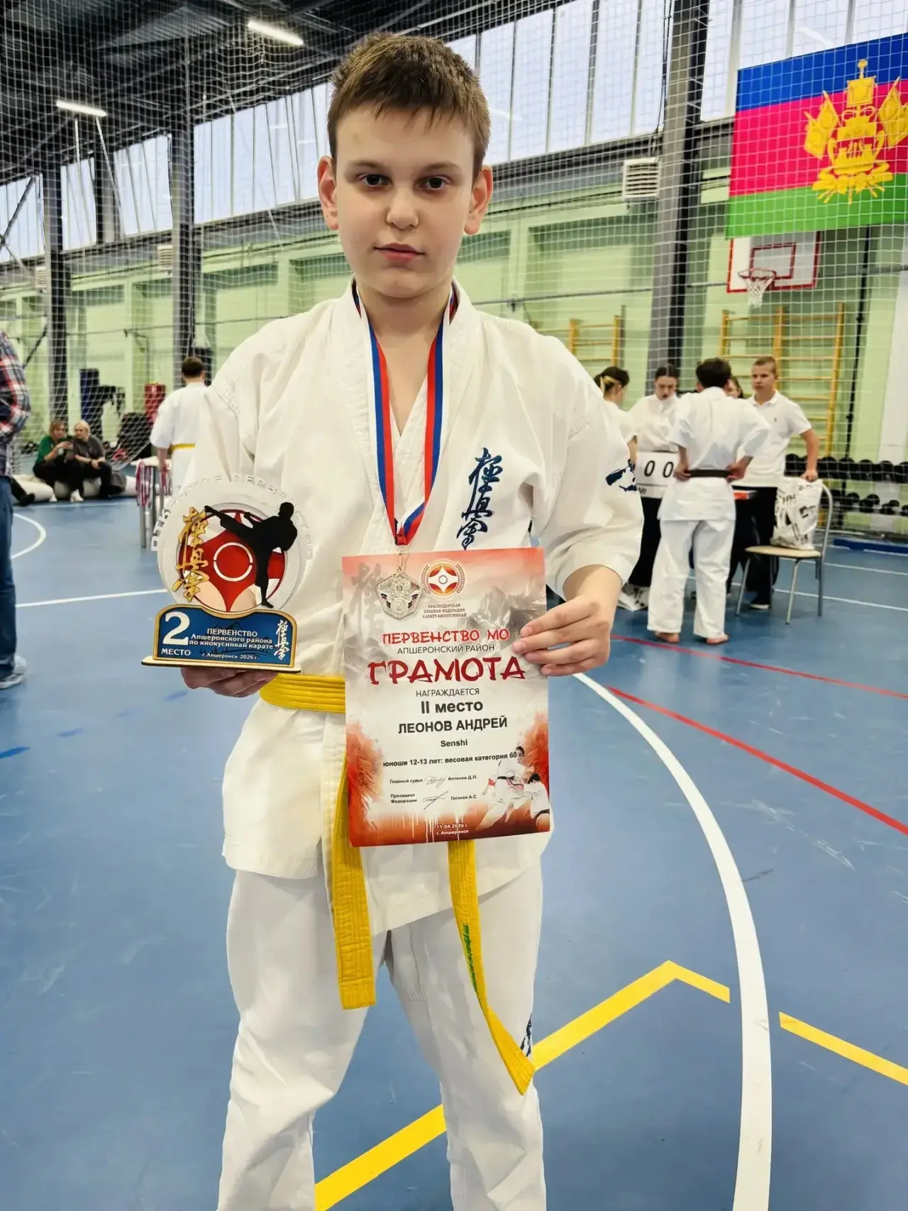 Леонов Андрей ученик 6 «Б» класса 11.04.2016 года принял участие в Первенстве МО Апшеронский район г. Апшеронск по каратэ киокусинкай и занял 🥈🏆 место. Поздравляем Андрея и желаем дальнейших успехов💪