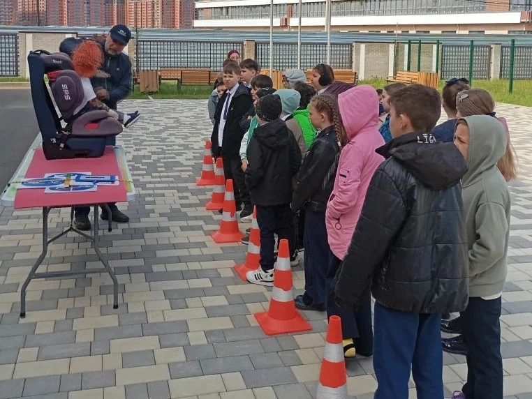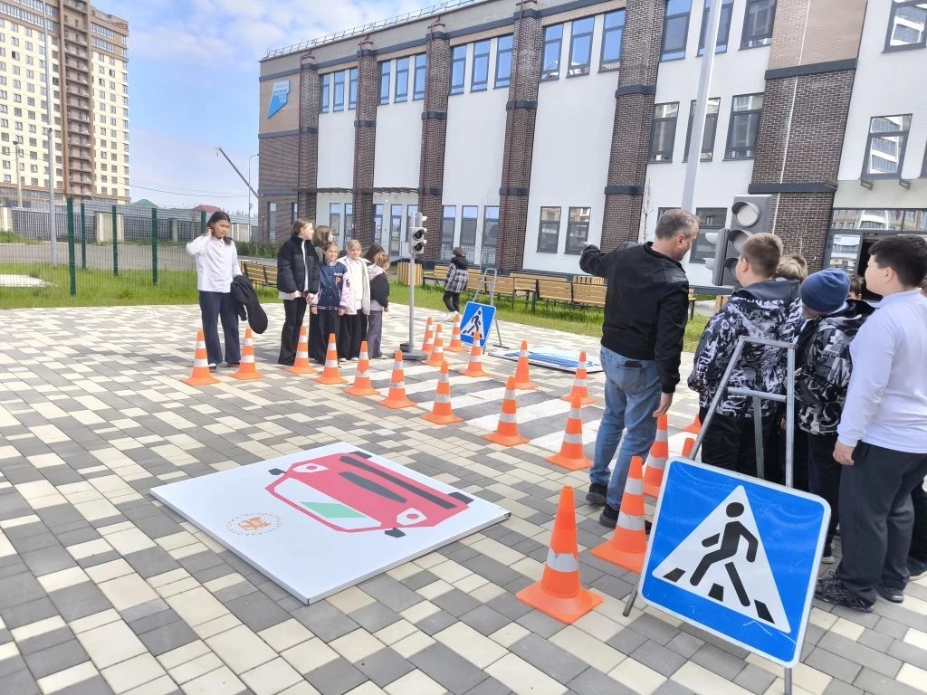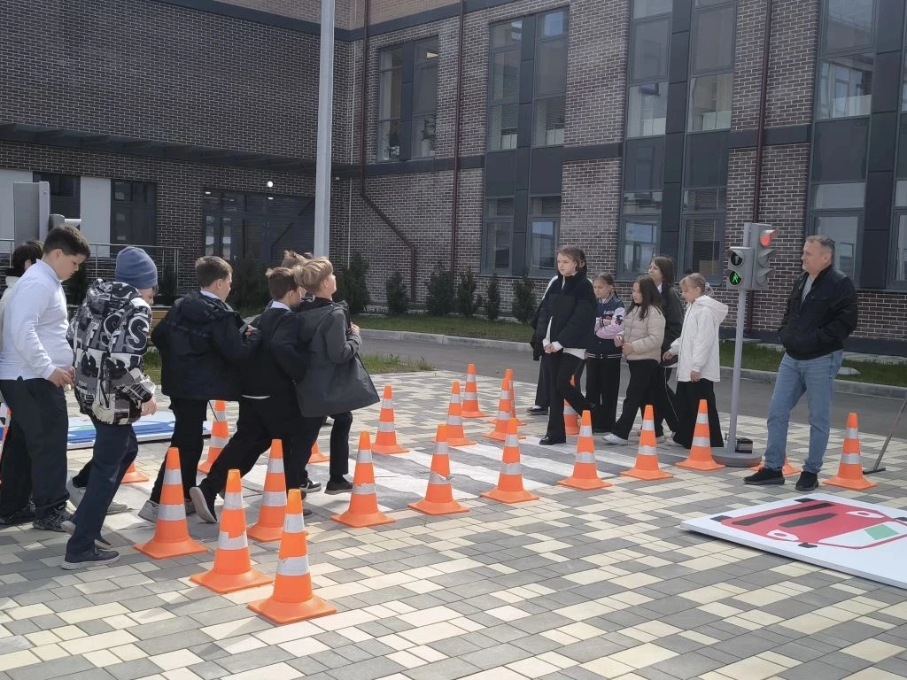 Ученики 1–4 классов отправились в увлекательное путешествие по имитированной дороге. Здесь было всё по-настоящему: