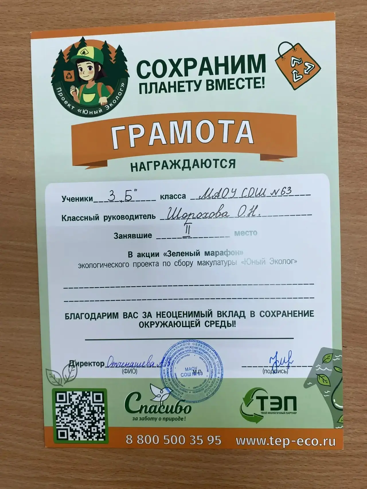 ⭐️Обучающиеся 3 Б класса заняли 2 место в акции по сбору макулатуры.