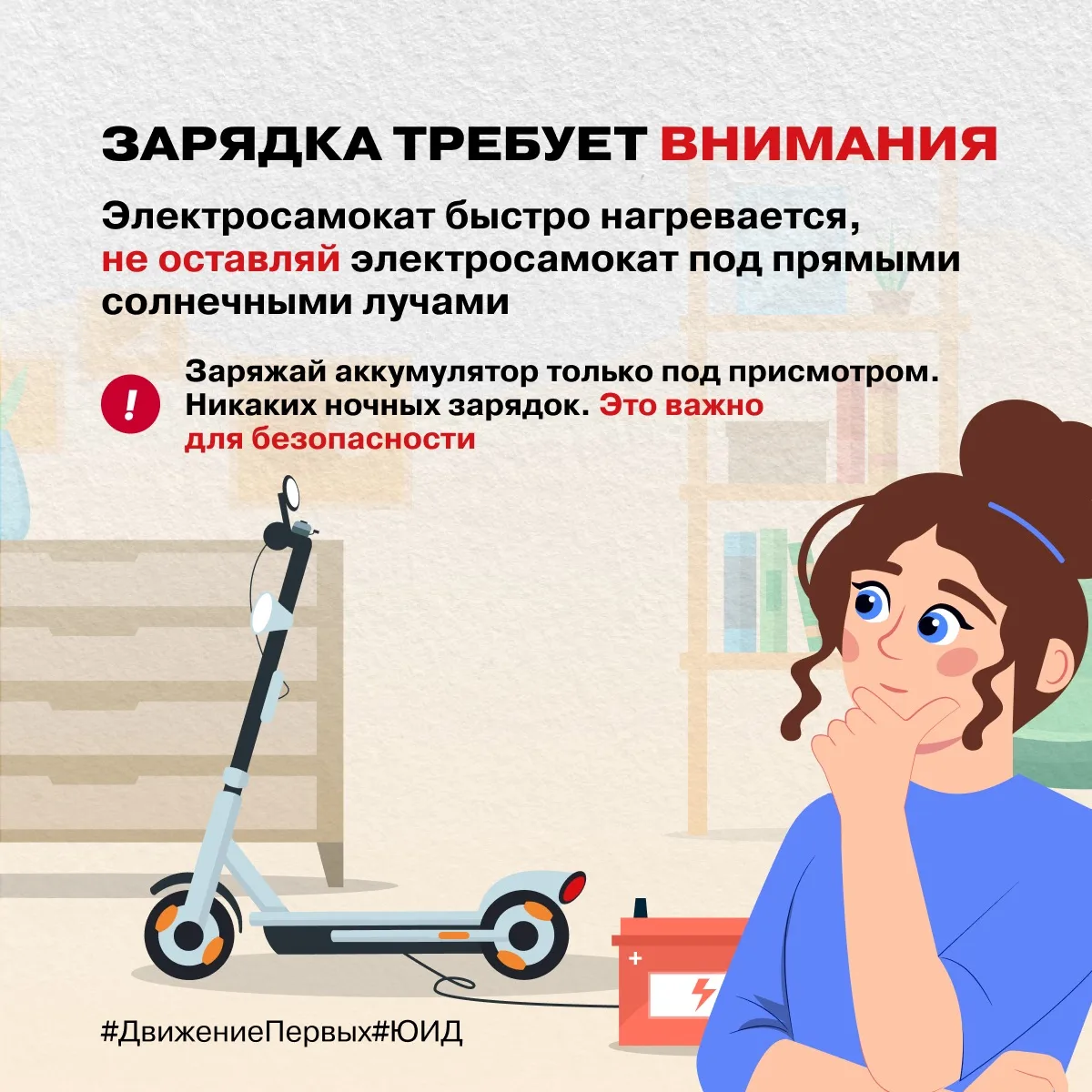 В очередной раз напоминаю, как важно заботиться о свой безопасности 🛴 Движение Первых и Юные инспекторы движения собрали правила по уходу за такой техникой!