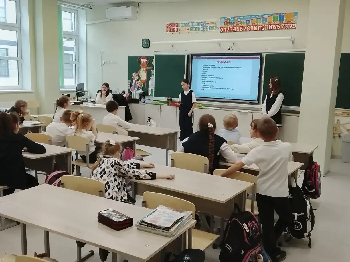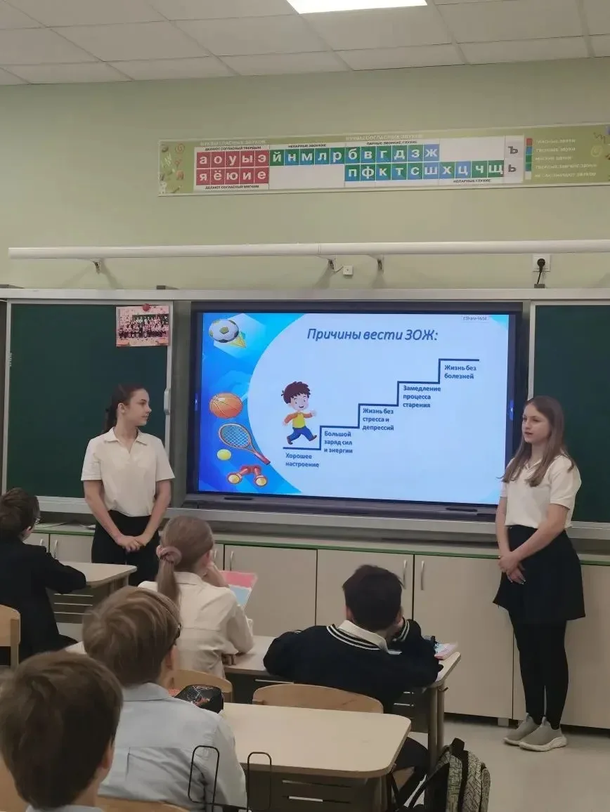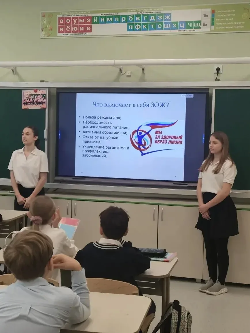 Активисты волонтерского отряда «Надежда» Колесникова Алиса, Дудулад София, 5 «Д» класс и Марченко Виктория, 5 «П» класс вместе с ребятами активно обсуждали важность отказа от вредных привычек, преимущества спорта и правильного питания 🍏