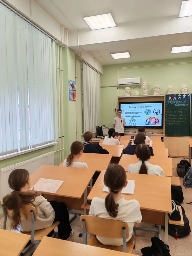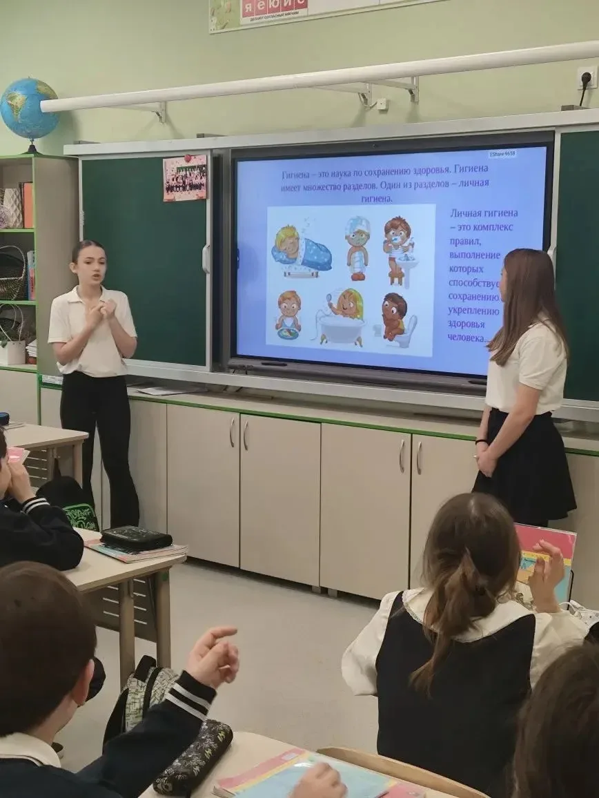 02.03.26г. участник экологического отряда «ЭкоМир» провёл увлекательный урок для 6 «У» класса на тему: «Гигиена и экологическая культура».🌿