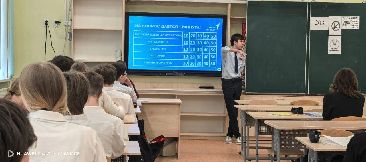 💙 Заместитель лидера направления «Медиа и коммуникации» Первичного отделения МАОУ СОШ №103 Датченко Егор выступил в роли наставника для 10 - 11 классов и провел интеллектуальную игру для них.