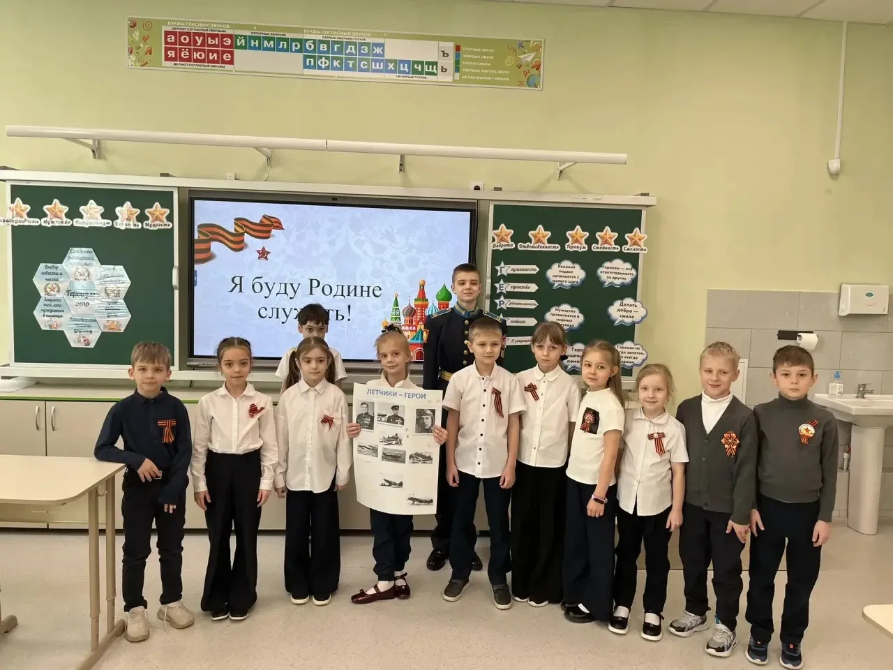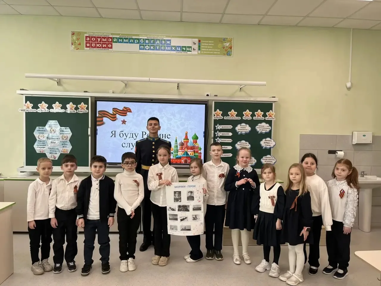 25.02.2026 Активисты военно-патриотического отряда им.С.В. совместно с волонтерским движением «Дружба» провели викторину для 7 «К» класса на тему «История формирования Российской армии» ⭐️