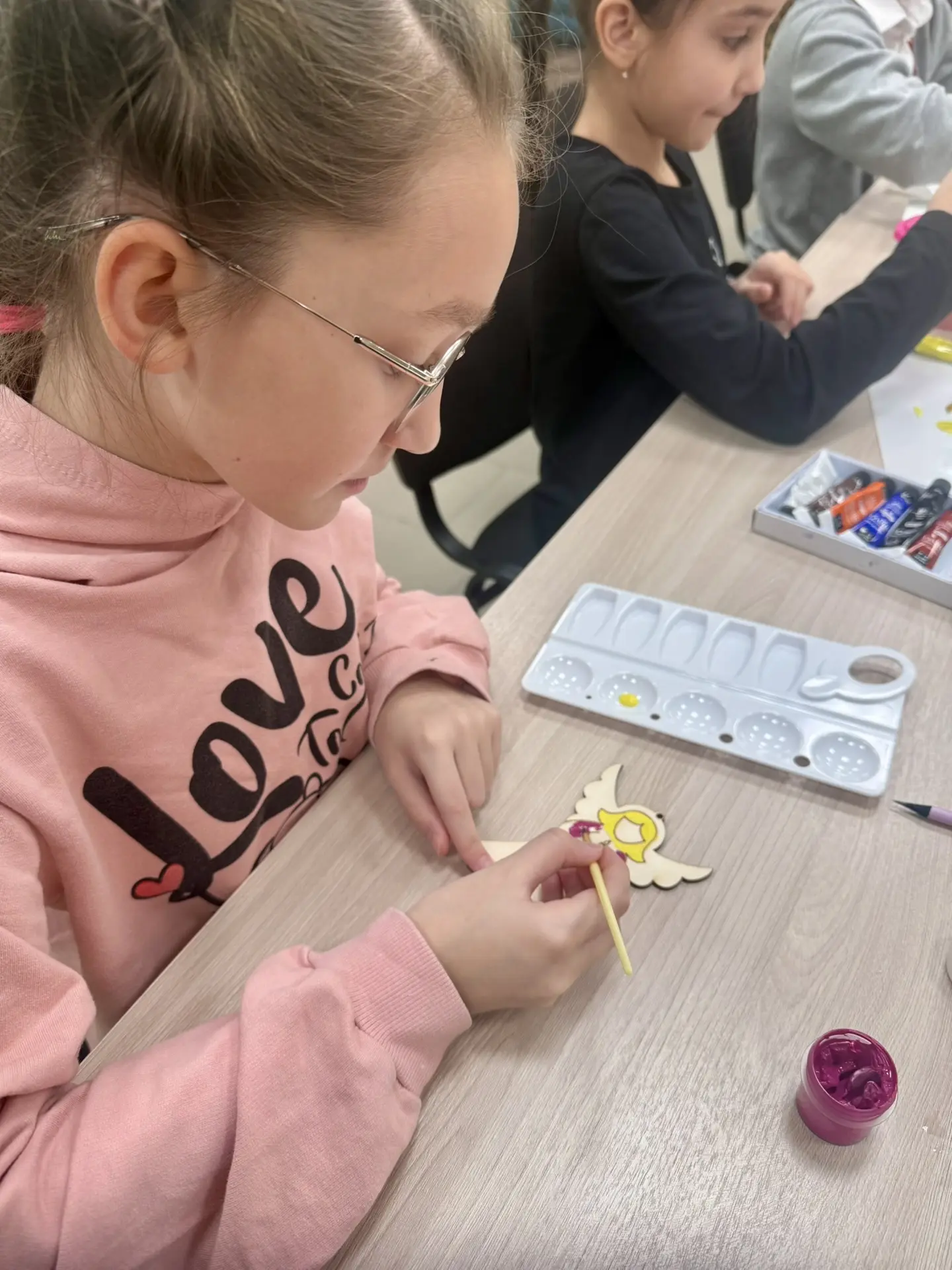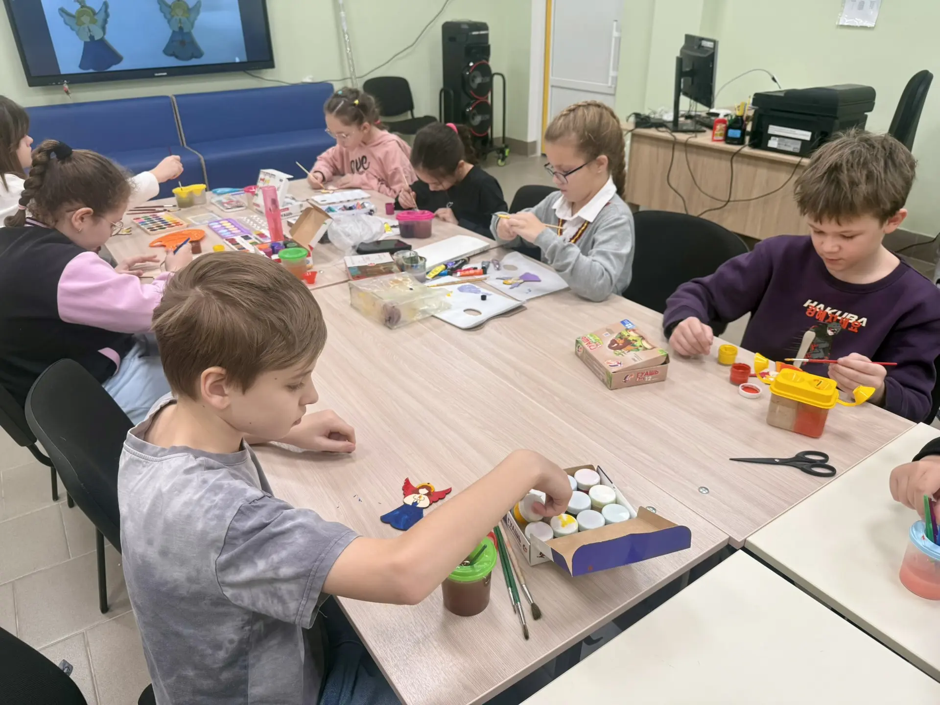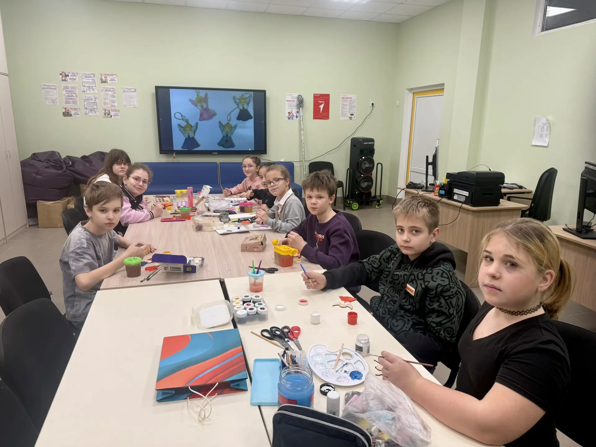 🎨 На мастер-классе ребята расписывали деревянную заготовку, внося в неё свою творческую изюминку. Деревянная фигурка станет душевным украшением на ёлку🎄, отличным подарком себе, своей семье или другу, с пожеланиями благополучия, счастья и уюта ❤️