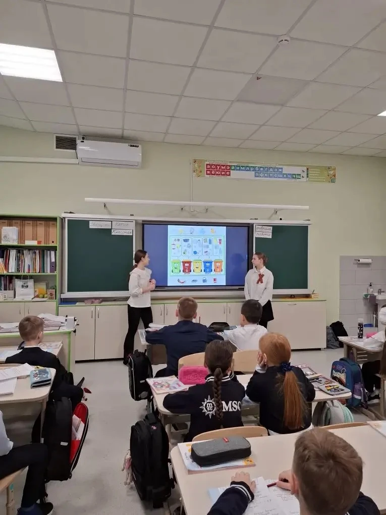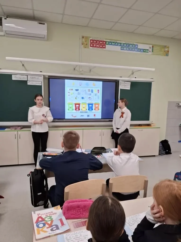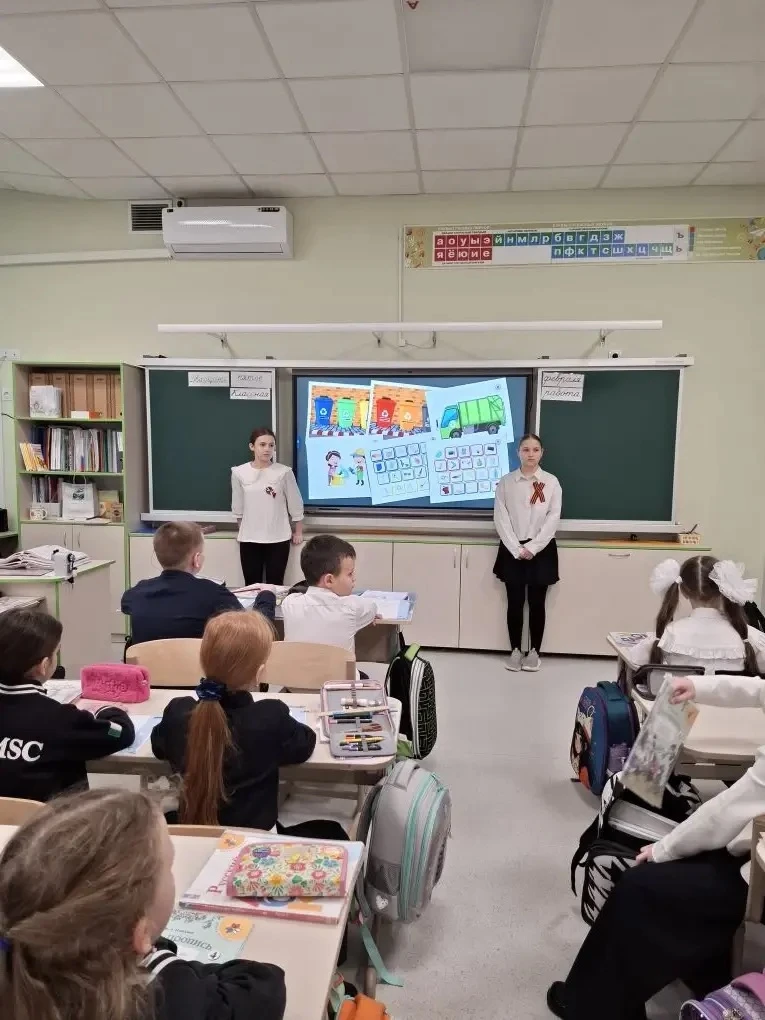 💚Активисты волонтерского отряда «Надежда» - ученицы 6 «З» класса, Костыркина Василиса и Коровина Кира обсудили с ребятами актуальность проблемы отходов. Волонтёры рассказали о масштабах данной экологической проблемы, о том, что такое «раздельный сбор» отходов и для чего нужно это делать. Также дети изучили вопрос потребления биоразлагаемой тары и упаковки. Урок сопровождался презентацией. После чего дети закрепили полученные знания в игровом задании, где необходимо было сортировать мусор и рассказать о сроках разложения данного вида отхода. А также узнали о «второй жизни» мусора🗑️