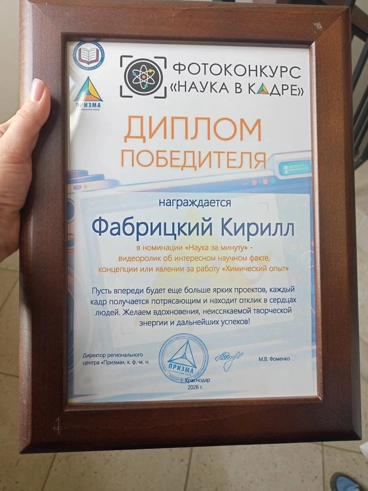 👨🔬Ученик 2в класса Фабрицкий Кирилл получил долгожданный диплом!