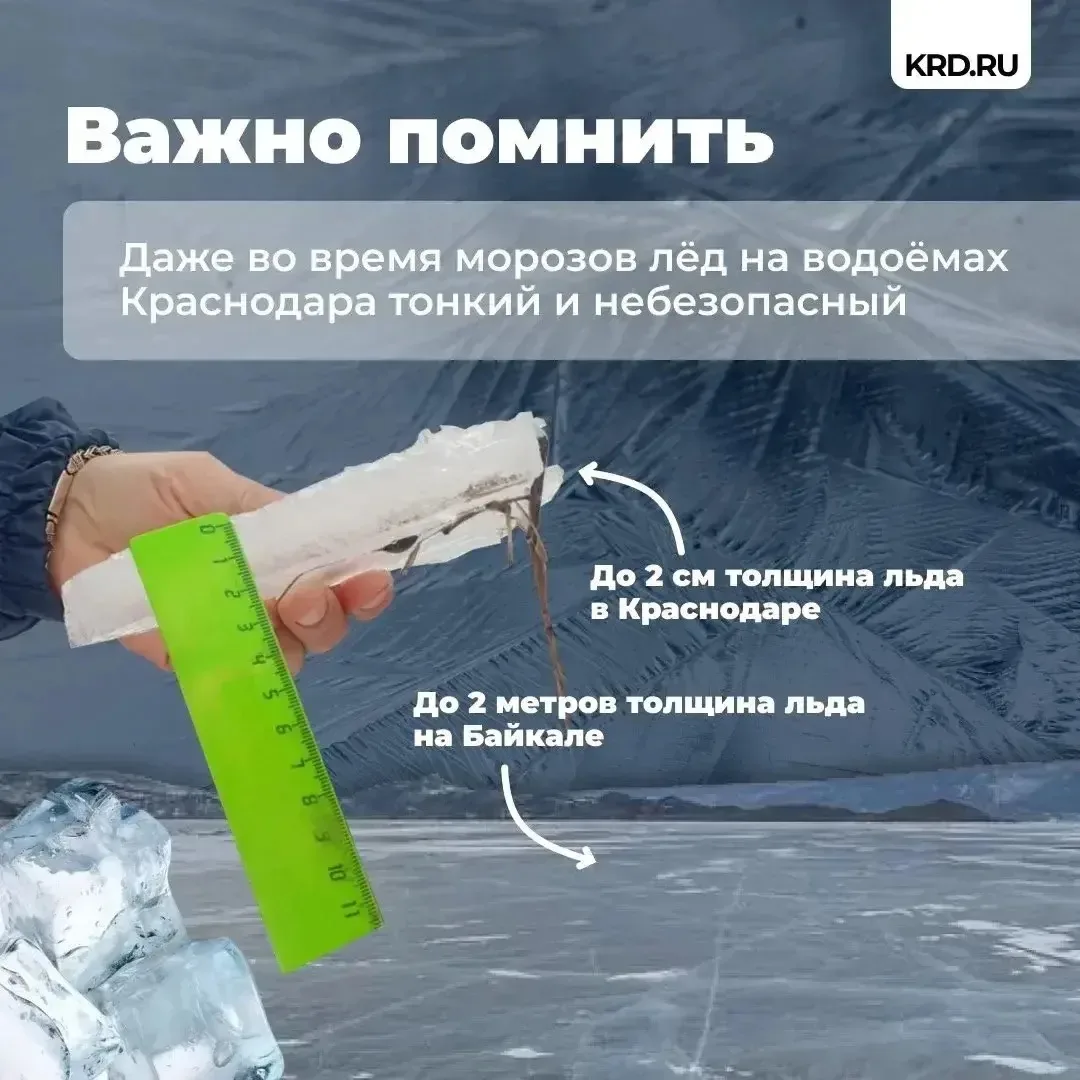 Его толщина неоднородна, он хрупкий и крайне опасен. Напоминаем о том, что выход на лёд категорически запрещён!
