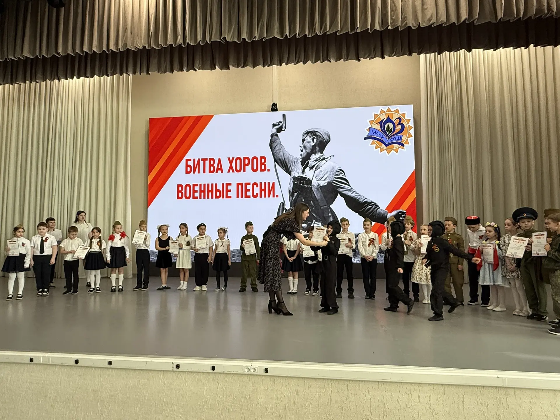 🎶 Сегодня в нашей школе состоялся первый день вокального конкурса, посвященного Году единства народов России 🇷🇺 и 81 годовщине Победы в Великой Отечественной войне, «Битва хоров. Военные песни» 🎖️