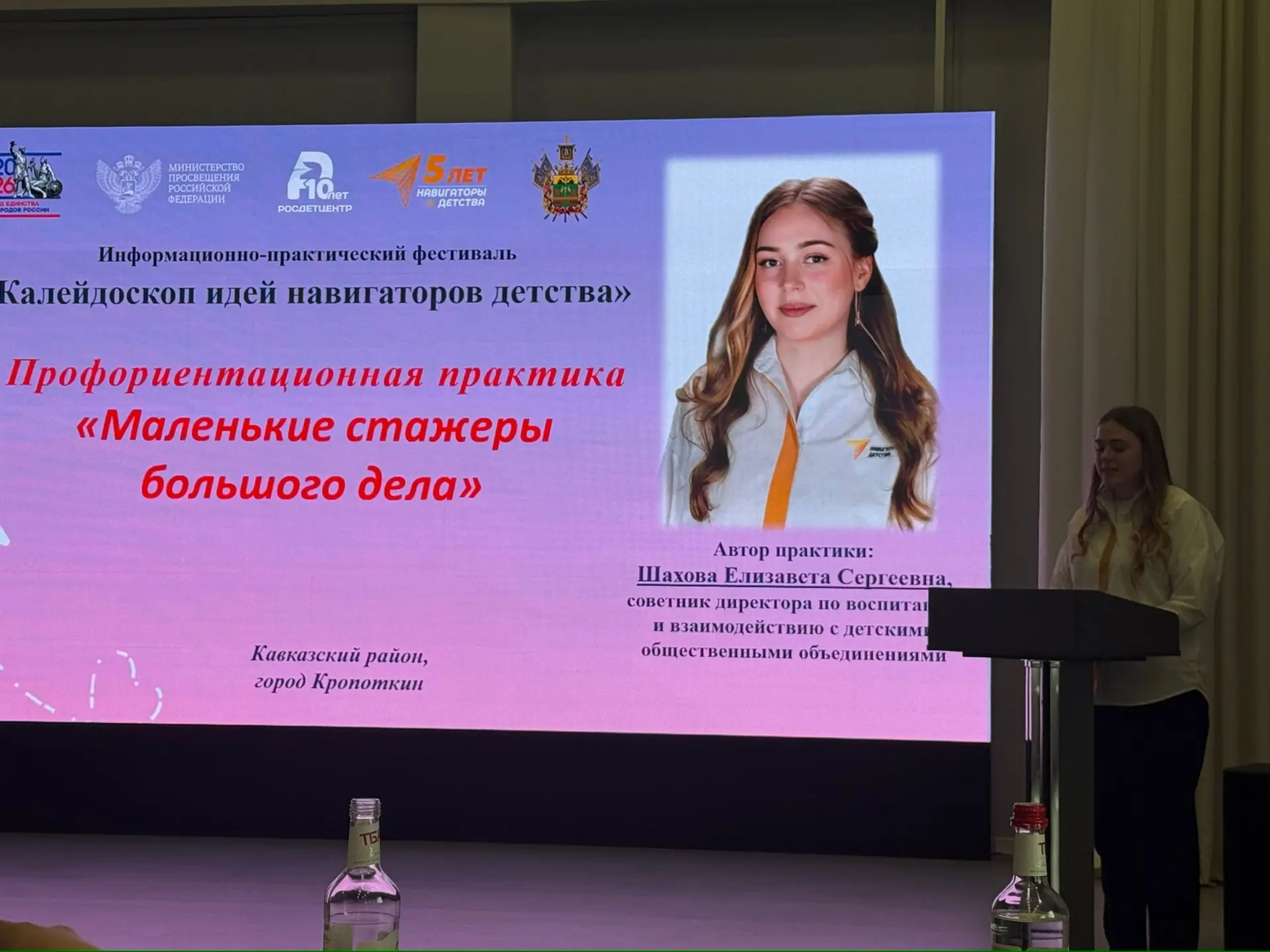 От Кавказского района в событии приняла участие советник директора по воспитанию МБОУ СОШ №5 им. В.В. Терешковой — Шахова Е.С. 🎓👏