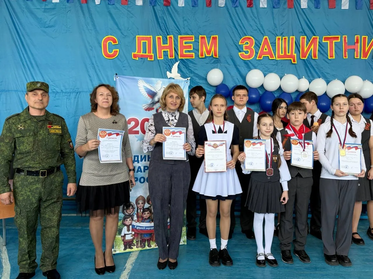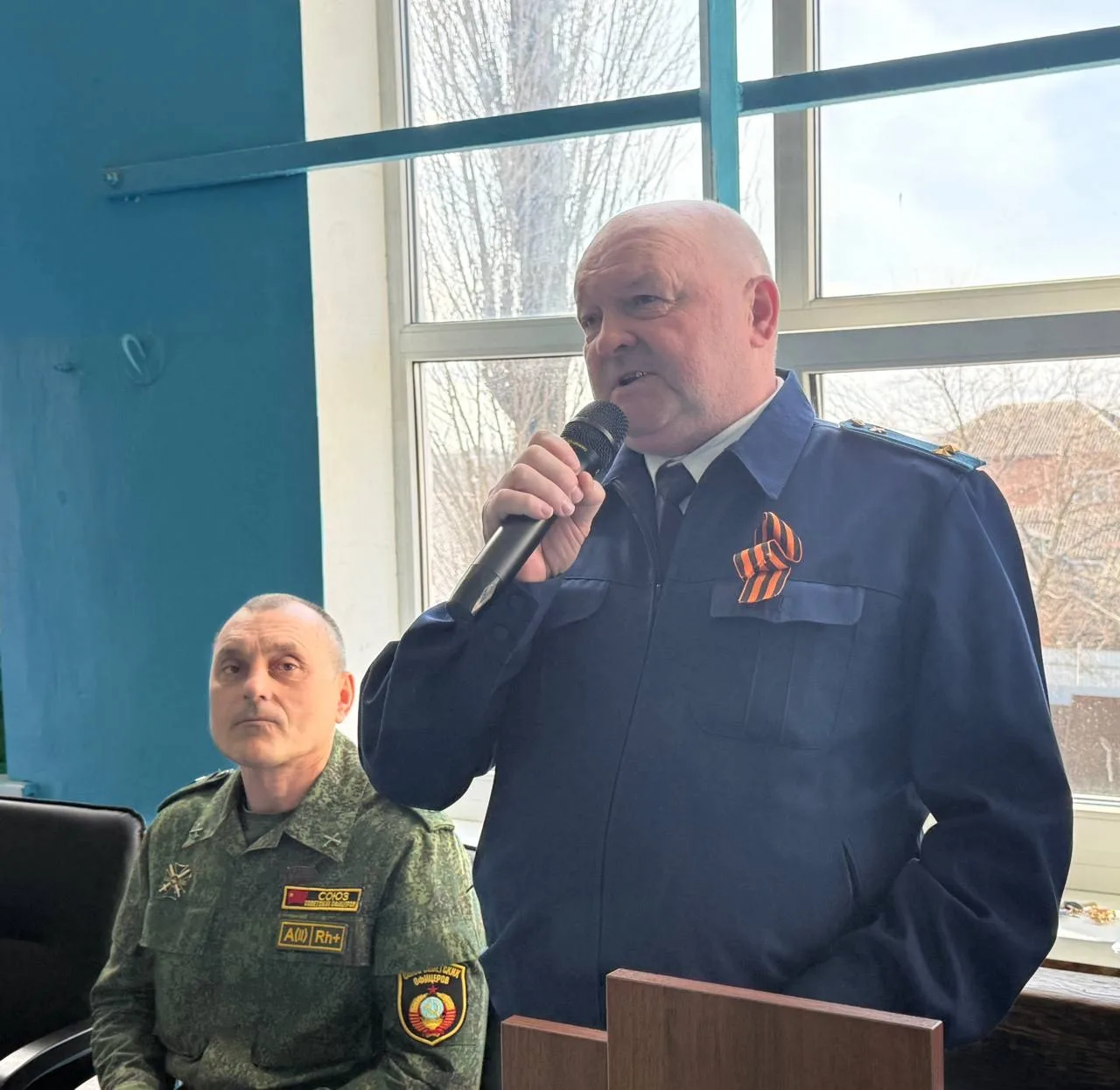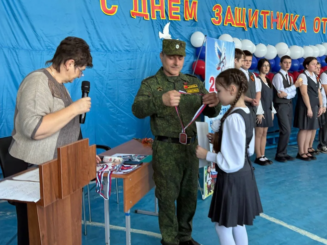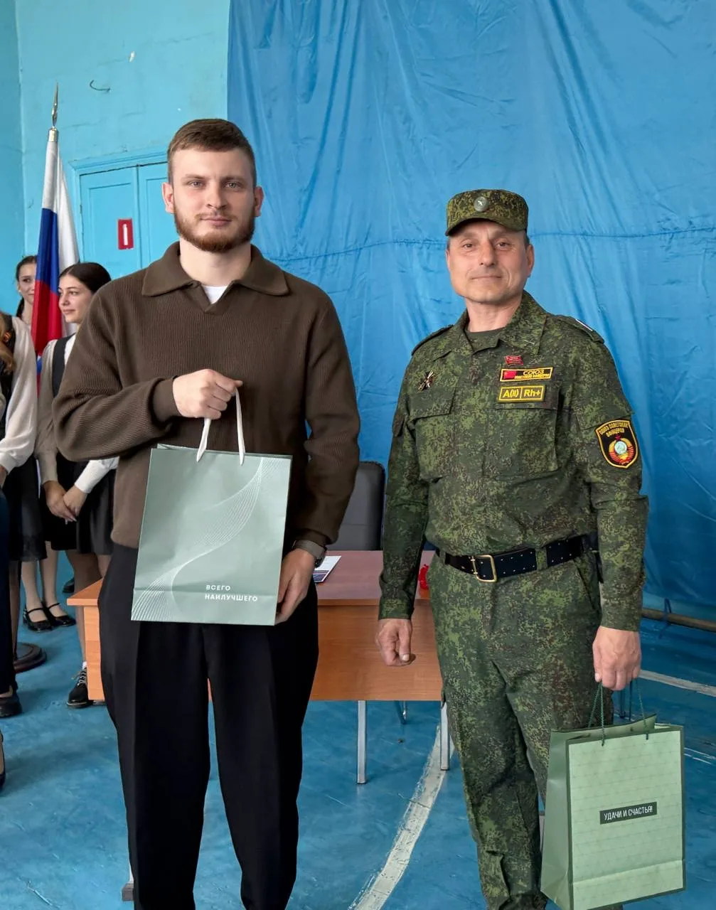 ⭐️ Почетным гостем мероприятия стал Скринка Валерий Альгирдасович, старшина, участник боевых действий в Чеченской республике. Он обратился к ребятам с приветственным словом, и поздравил всех с наступающим праздником. Он лично вручил грамоты самым активным учащимся, отметив их старание и патриотизм. 🇷🇺👏