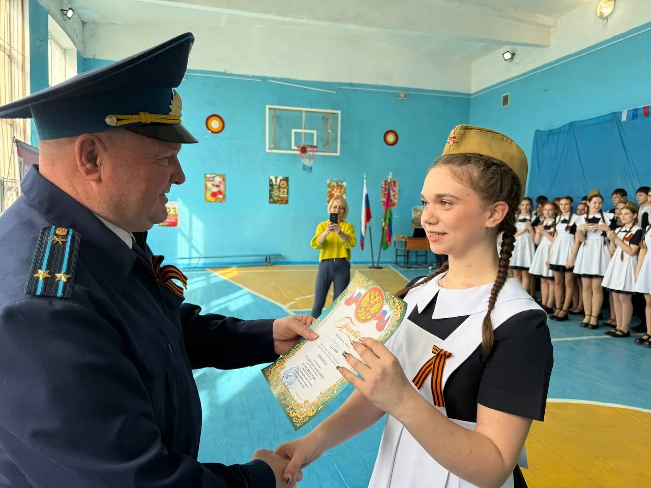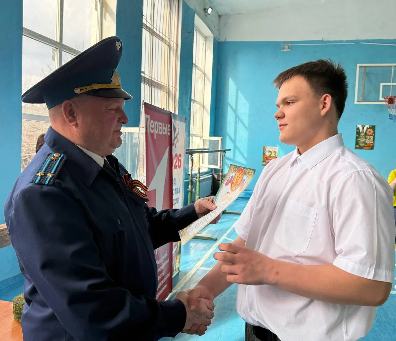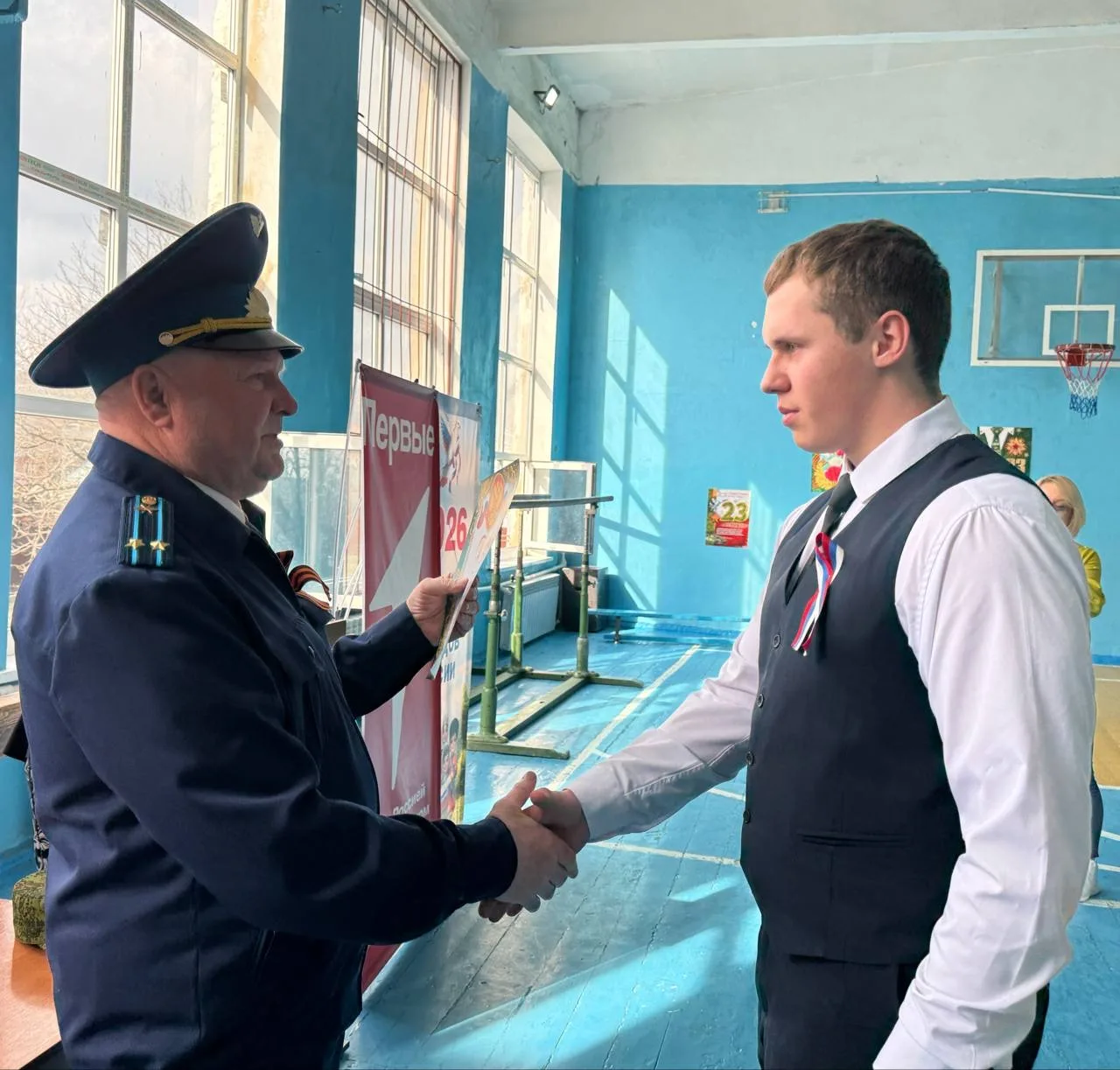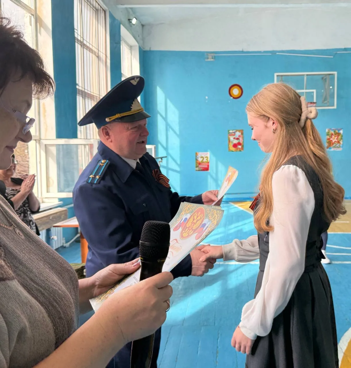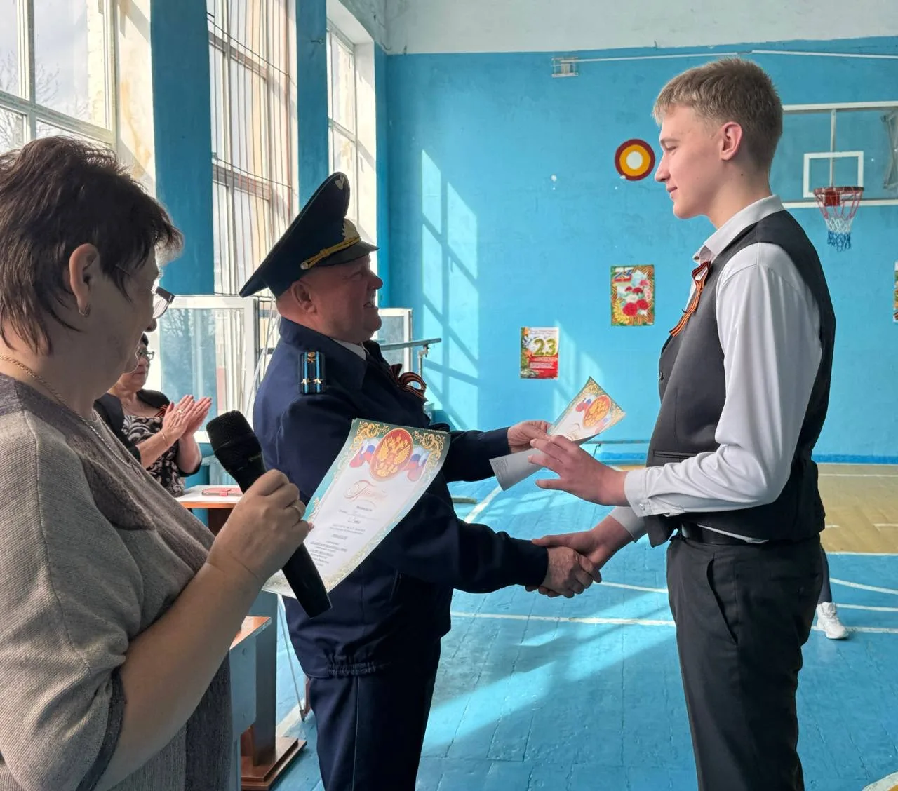 ⭐️ Почетным гостем мероприятия стал Скринка Валерий Альгирдасович, старшина, участник боевых действий в Чеченской республике. Он обратился к ребятам с приветственным словом, и поздравил всех с наступающим праздником. Он лично вручил грамоты самым активным учащимся, отметив их старание и патриотизм. 🇷🇺👏
