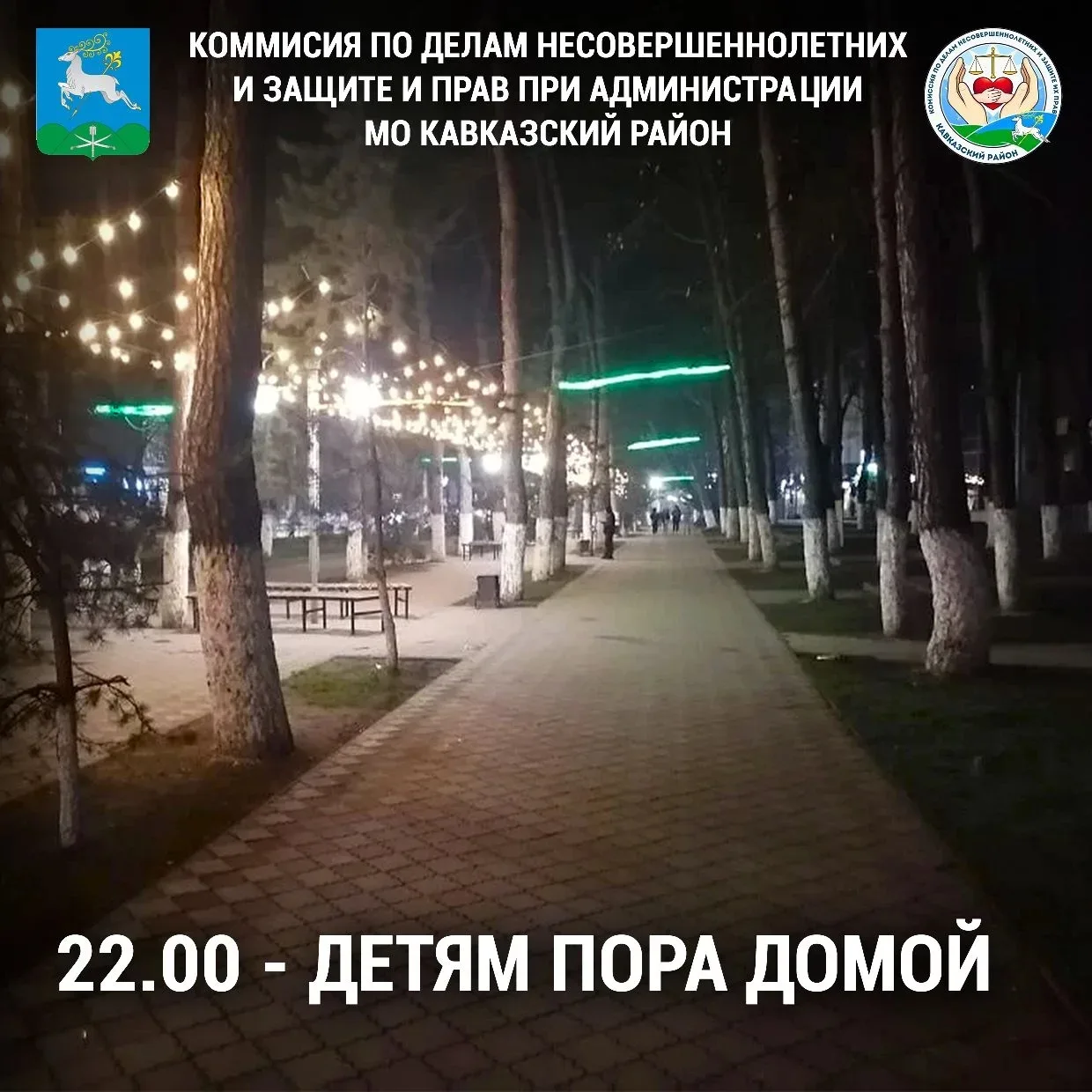 У закона нет каникул! Убедительно просим Вас контролировать время препровождение ваших детей! Нахождение их на улице в ночное время небезопасно!