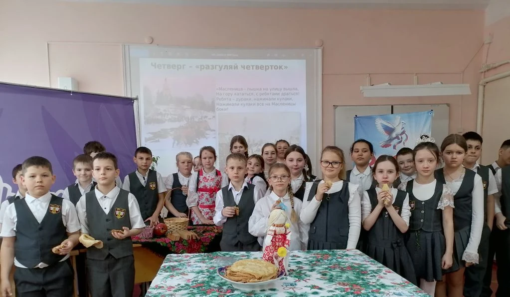 🎉🥞В конце урока, как и полагается на первый день встречи Масленицы в понедельник, ребята угощались вкусными блинами, которые приготовили их родители.