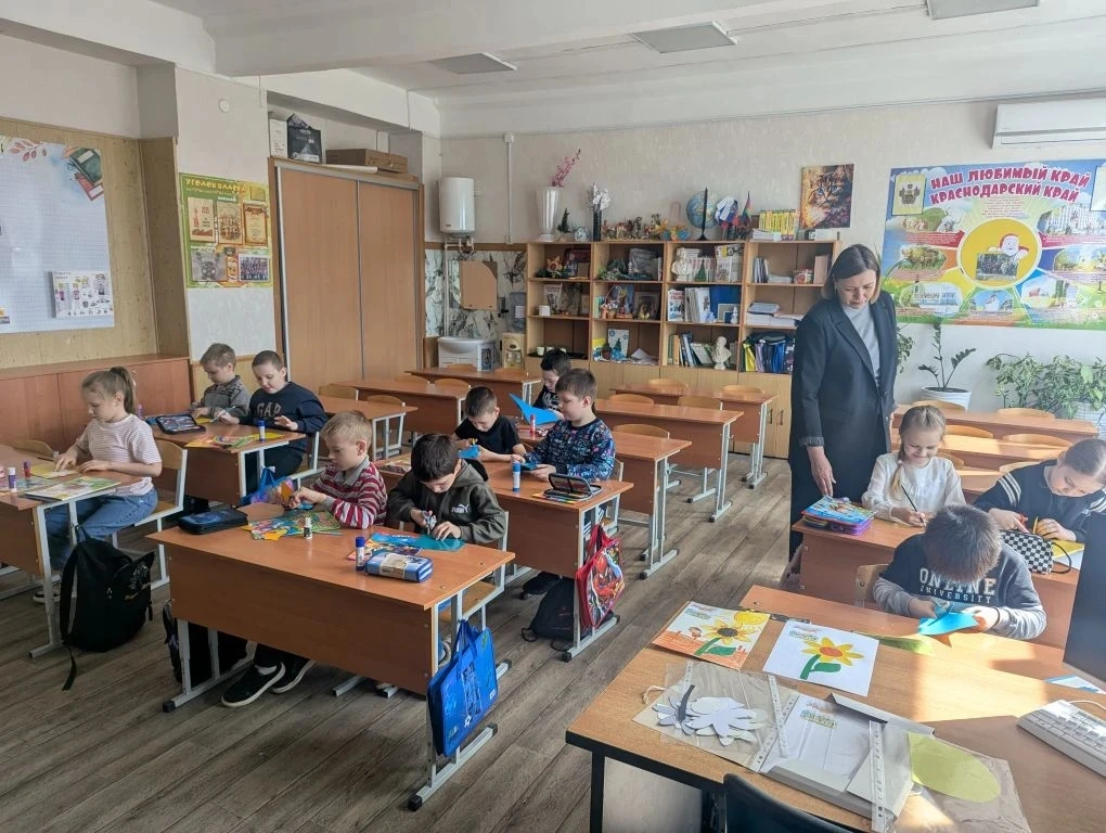🇷🇺Закрепить новые знания школьники решили творчески — они своими руками создали яркие аппликации солнечных подсолнухов🌻
