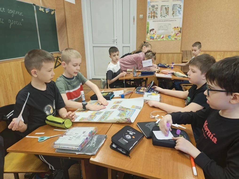 👩🏫Дети 2 «Б» класса МБОУ СОШ 5 им. В. В. Терешковой с увлечением поучаствовали в творческой мастерской по изготовлению газет!