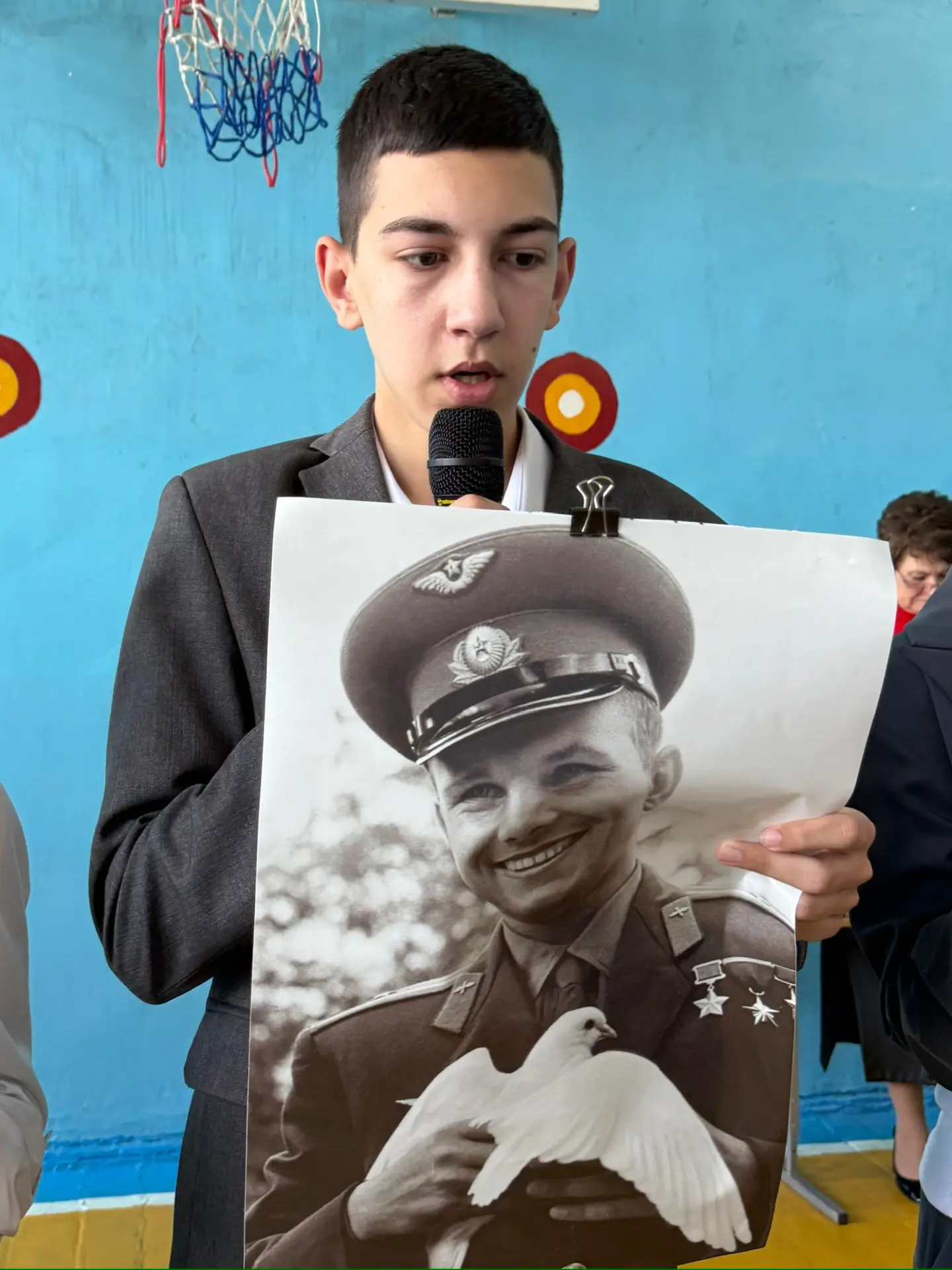 🎤 Дежурный 9 «А» класса выступил с важной речью, посвященной Дню космонавтики. Вспомнили легендарный полет Юрия Гагарина — первого человека в космосе! 👨🚀🌍