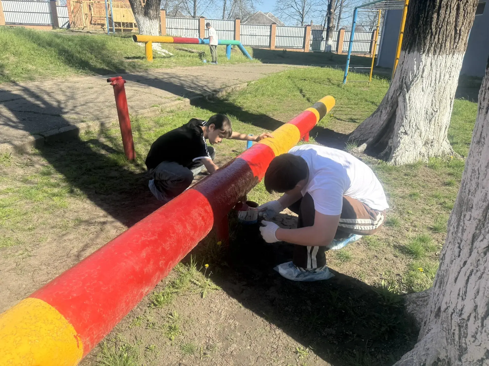 🧹☀️Вооружившись инвентарем, дружная школьная команда навела идеальный порядок на всей территории: ребята и педагоги старательно убирали мусор и прошлогоднюю листву, а также белили стволы деревьев, придавая школьному двору ухоженный и праздничный вид. Совместный труд на свежем воздухе сплотил коллектив и подарил всем заряд отличного настроения!