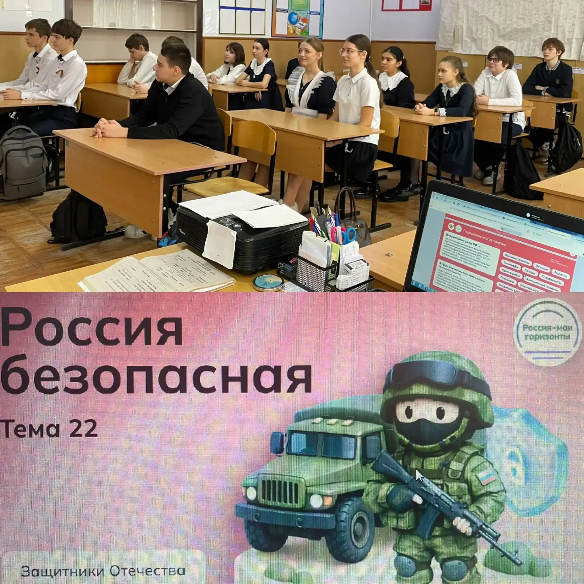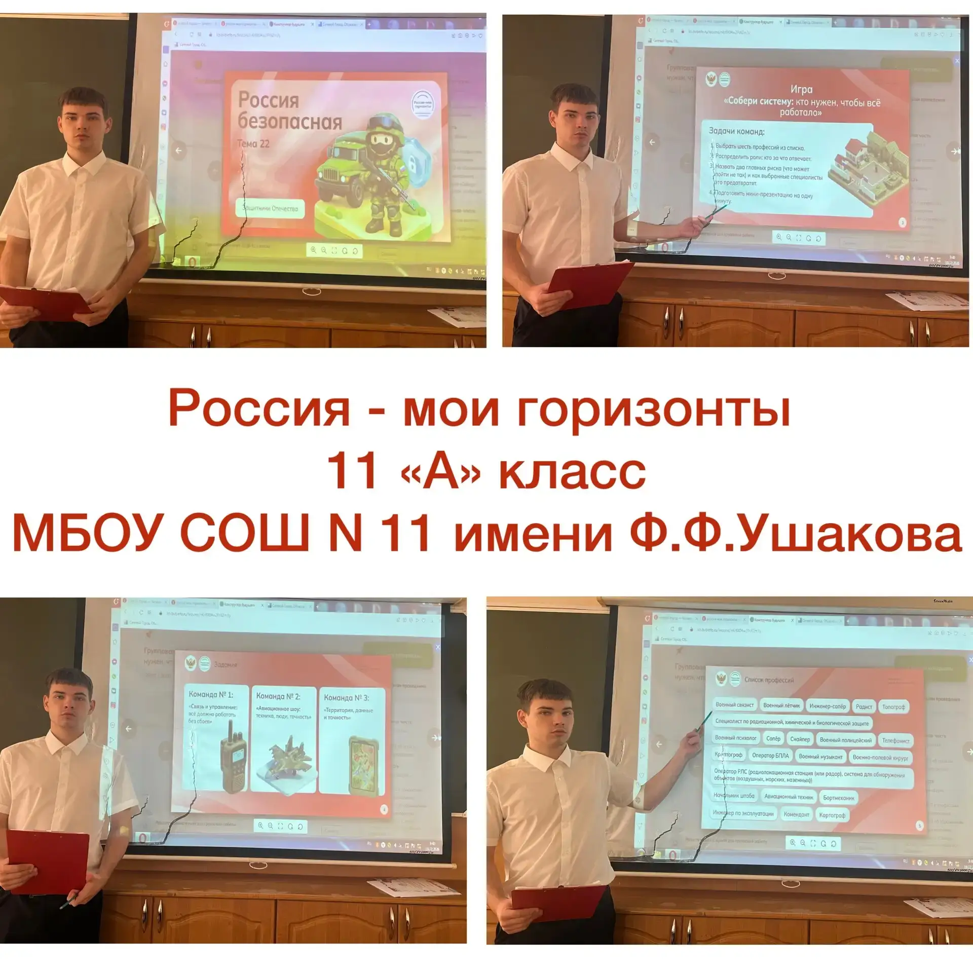 🇷🇺 19 февраля для учащихся 6-11 классов МБОУ СОШ №11 им. Ф. Ф. Ушакова было проведено очередное занятие курса «Россия — мои горизонты». Тема — «Россия безопасная: Защитники Отечества» — оказалась не просто разговором об армии, а настоящим путешествием в мир высоких технологий, истории и, конечно, людей, чья профессия — оберегать страну и каждого из нас .