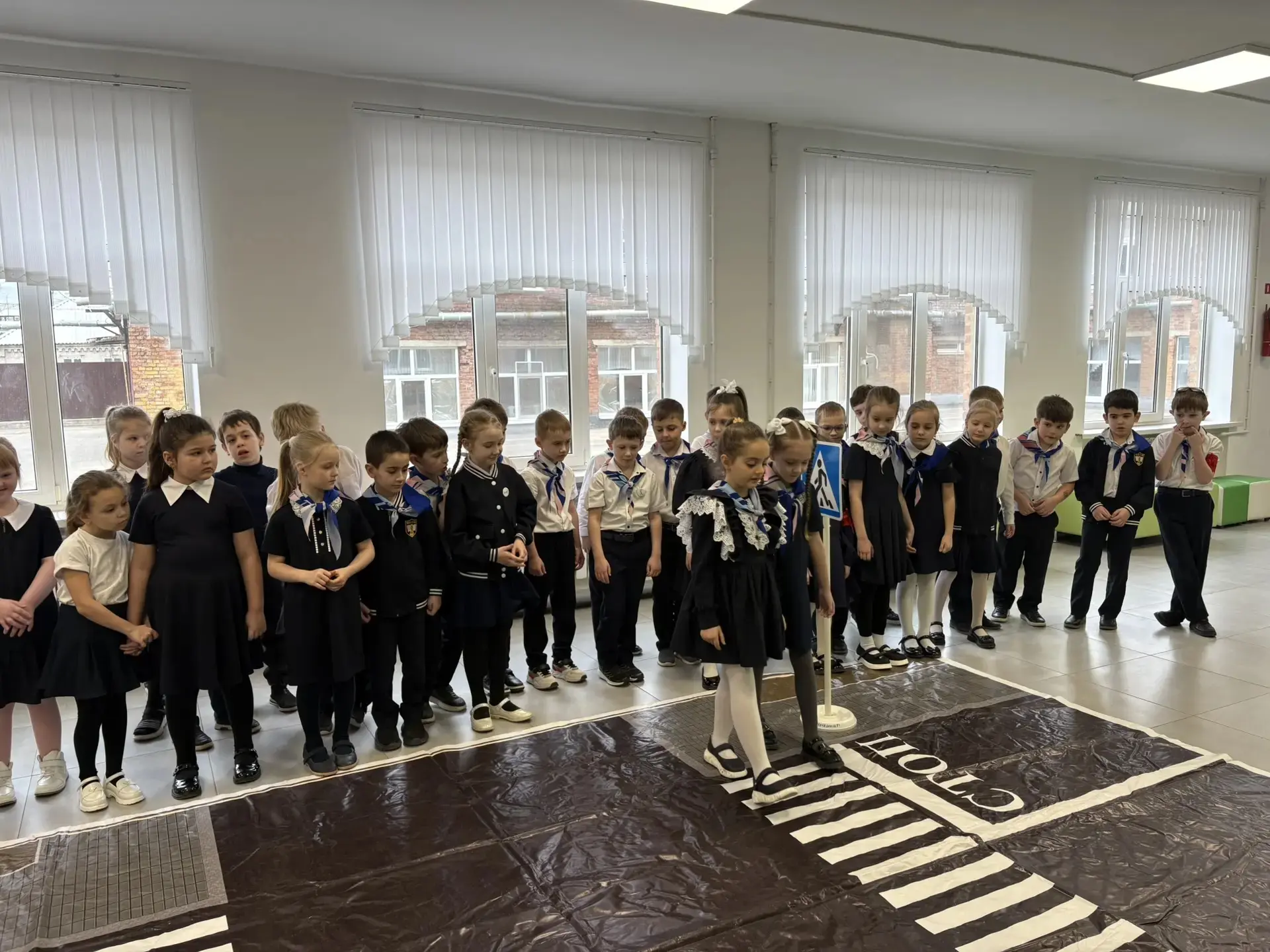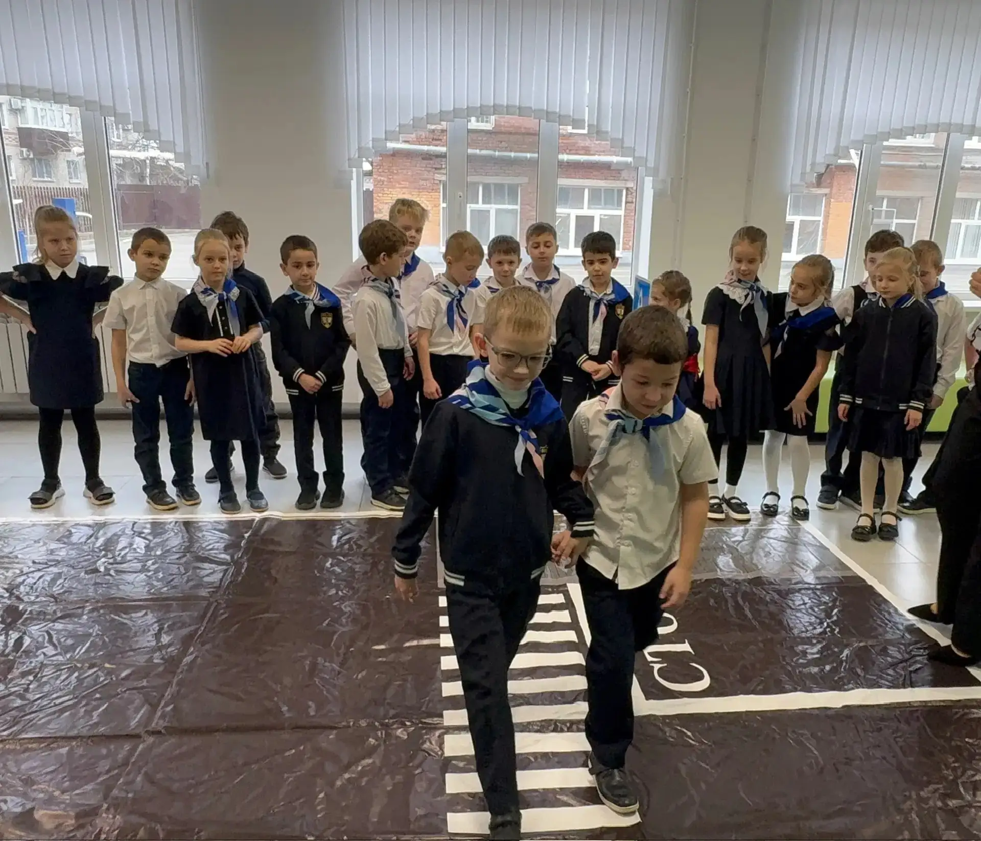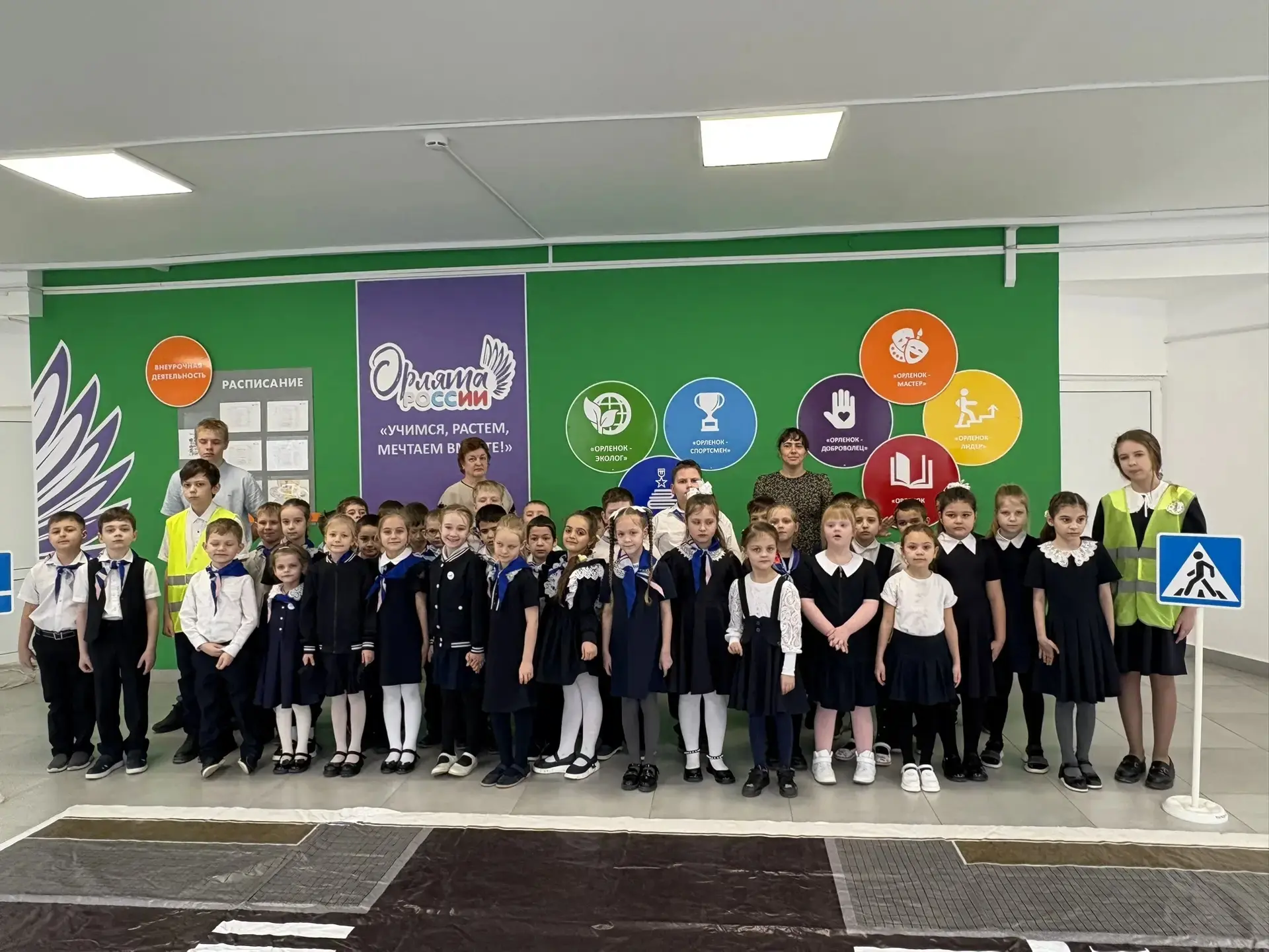 Вместе с отрядом юных инспекторов дорожного движения "Светофор" ребята уверенно переходили дорогу, показывая пример правильного поведения на дороге.