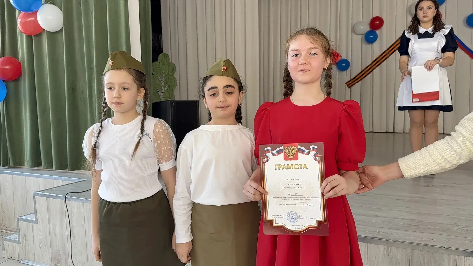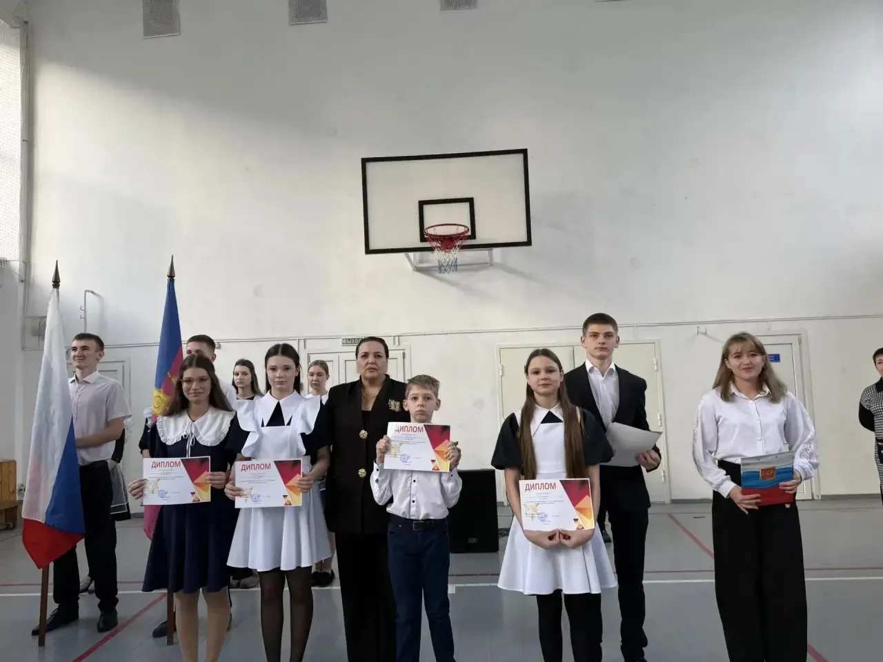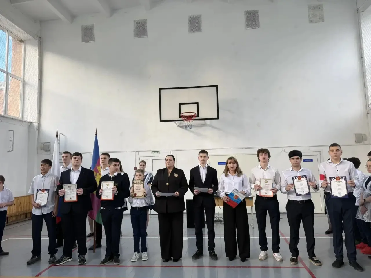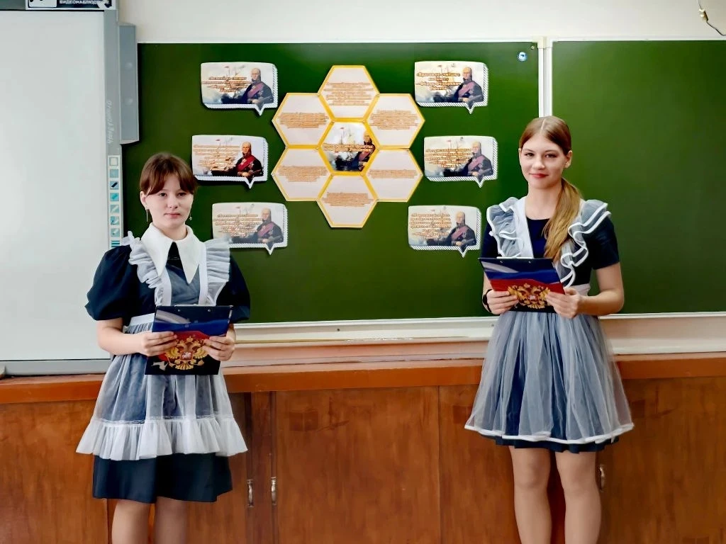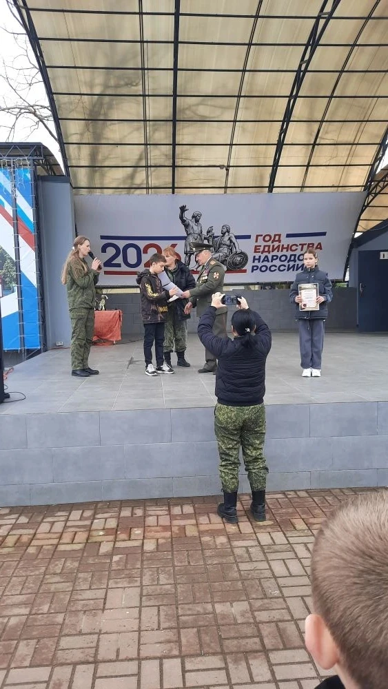 Директор школы Галина Александровна Тимченко поздравила ребят с достигнутыми успехами, отметив вклад каждого участника в общее дело. Она подчеркнула важность патриотизма и воспитания гордости за свою страну среди молодого поколения.