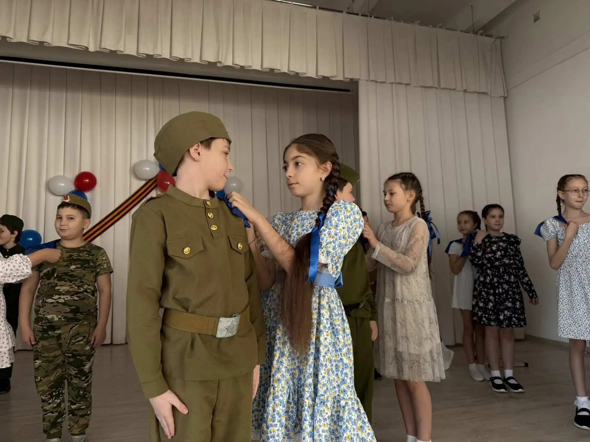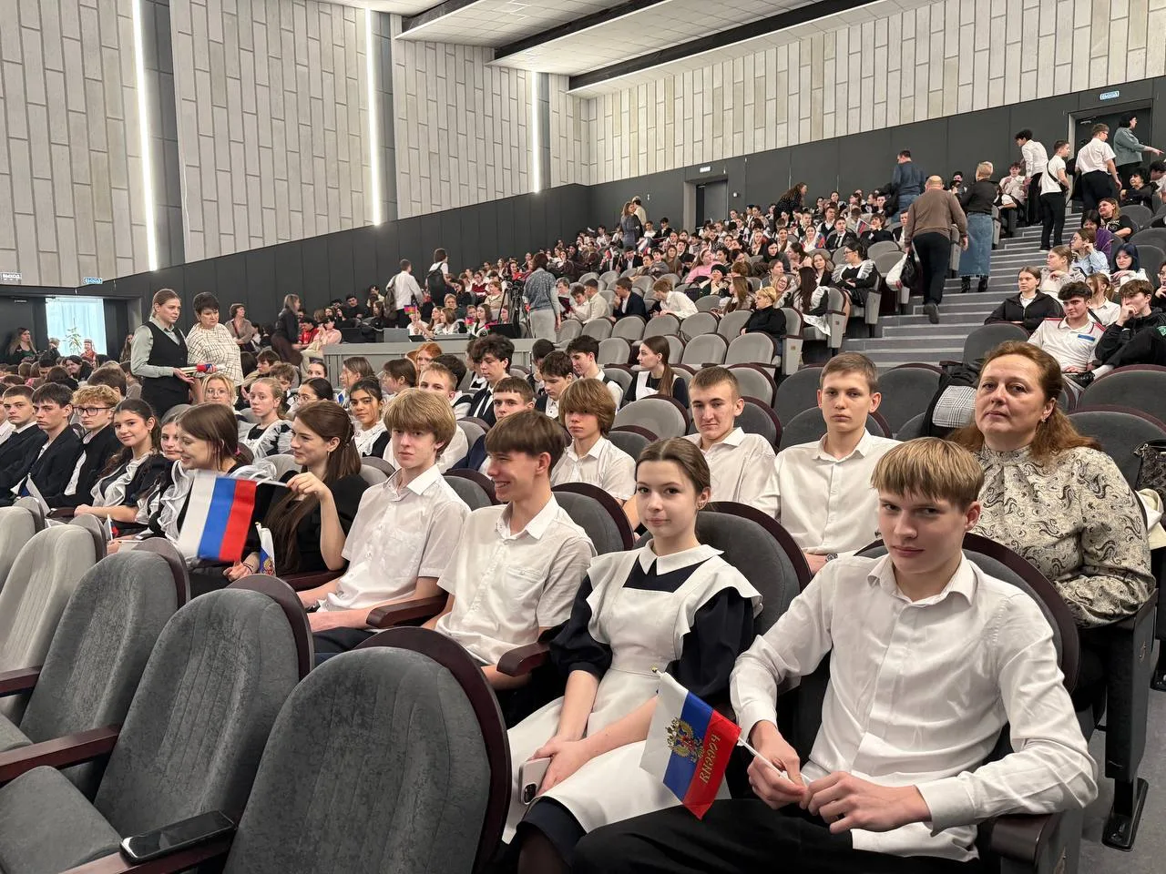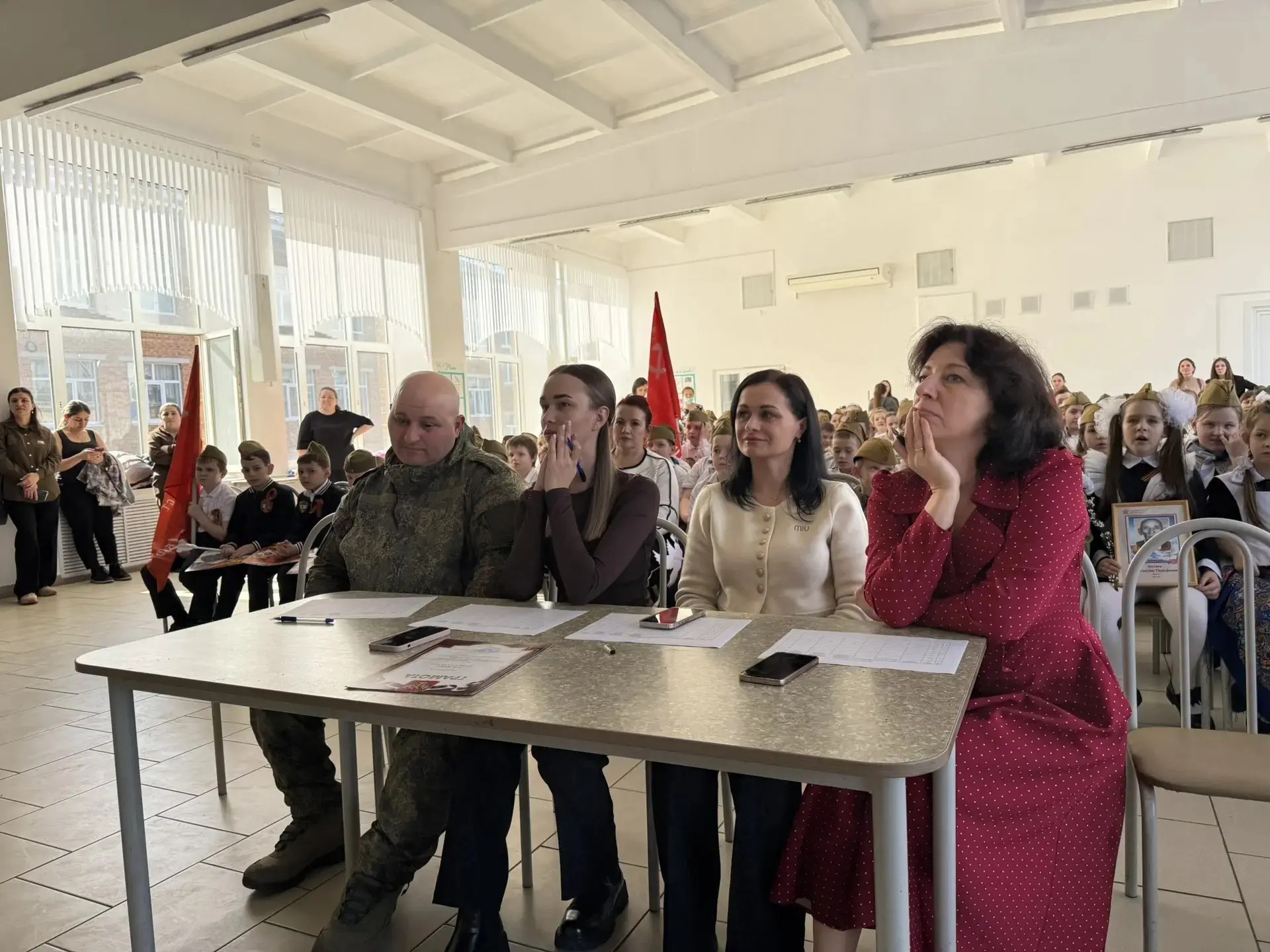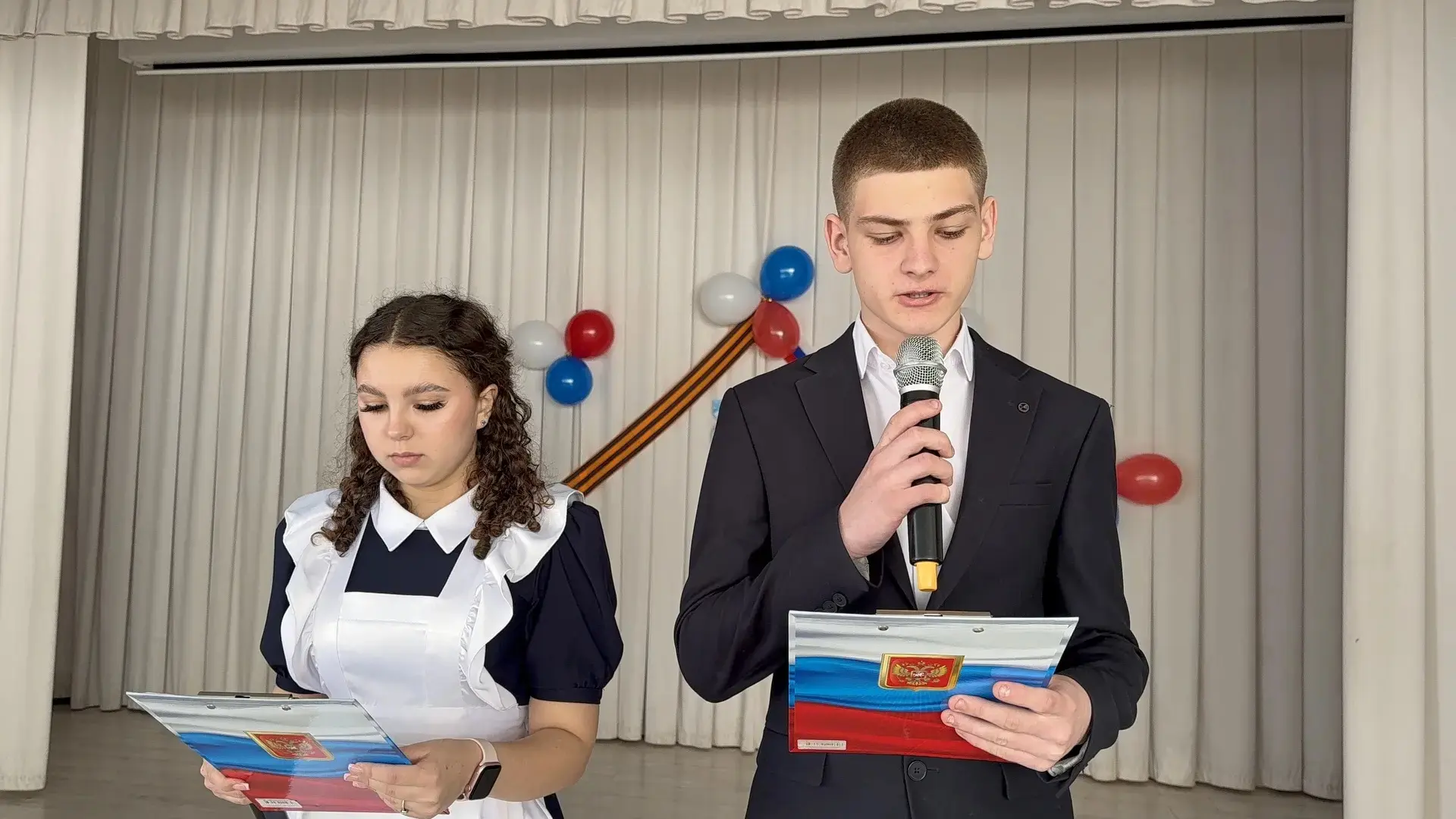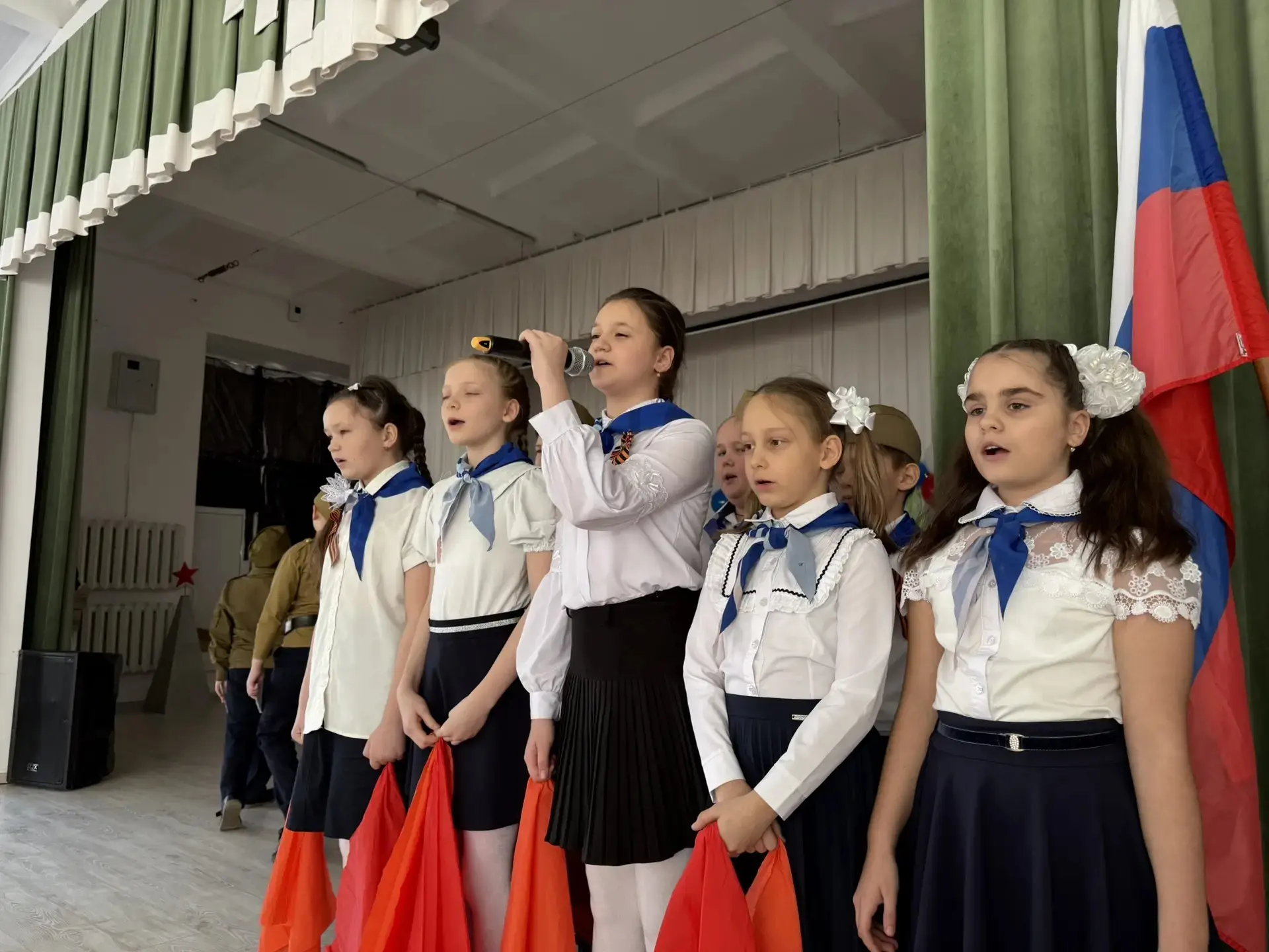 Директор школы Галина Александровна Тимченко поздравила ребят с достигнутыми успехами, отметив вклад каждого участника в общее дело. Она подчеркнула важность патриотизма и воспитания гордости за свою страну среди молодого поколения.
