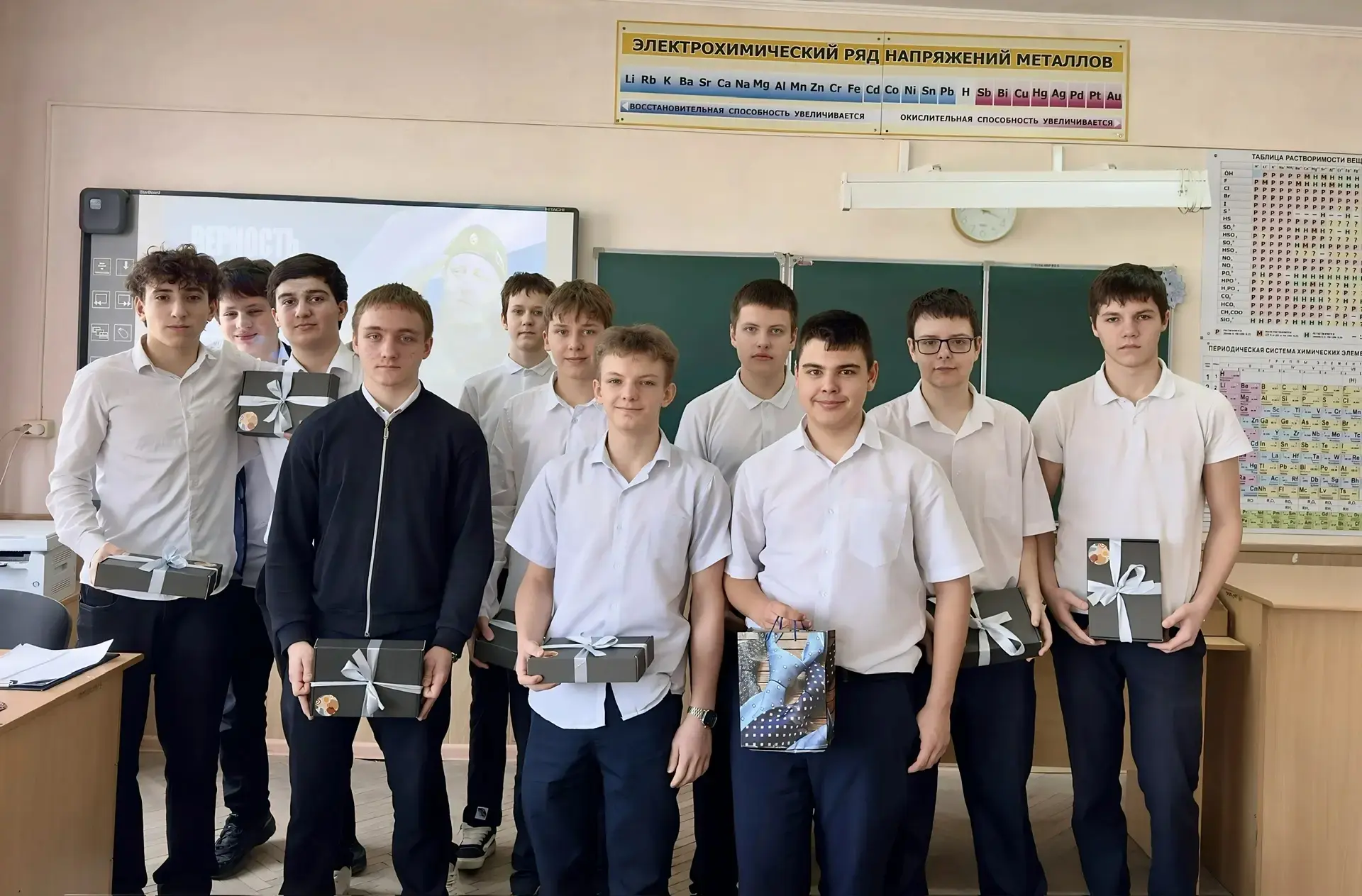 В преддверии Дня защитника Отечества в МБОУ СОШ № 11 им. Ф.Ф. Ушакова прошло мероприятие, наполненное теплом и уважением. Прекрасная половина педагогического коллектива: администрация школы, учителя - поздравили учителей-мужчин.