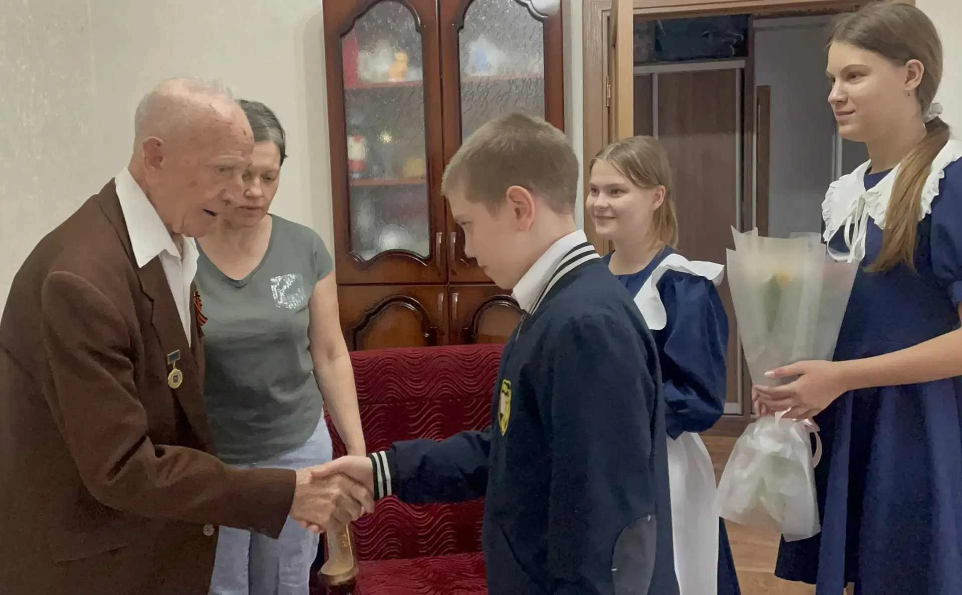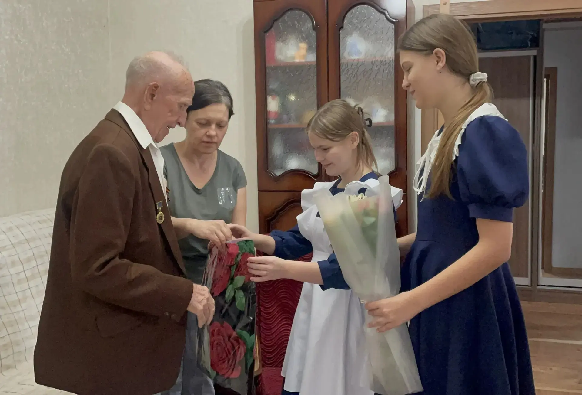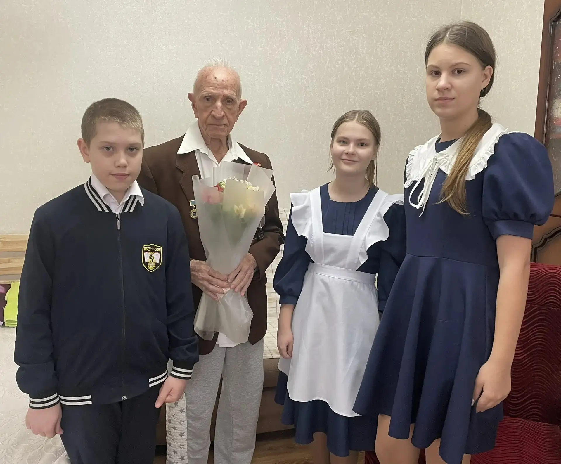 Сегодня, 19 февраля, накануне праздника Дня защитника Отечества, ученики МБОУ СОШ № 11 им. Ф.Ф. Ушакова вместе с классным руководителем Жабской Викторией Евгеньевной посетили ветерана Великой Отечественной войны — уважаемого Алексея Васильевича Горяинова.