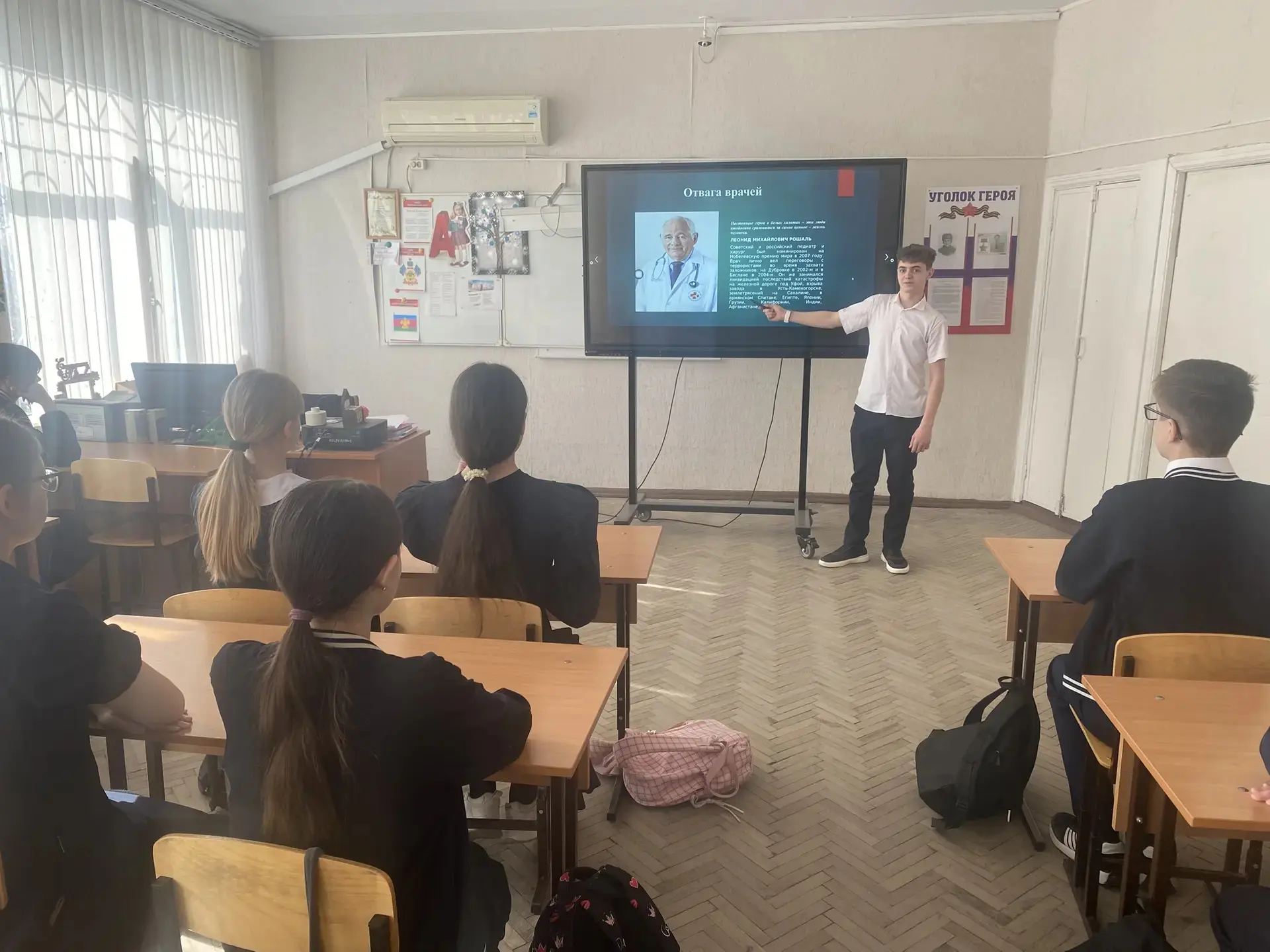 Сегодня, 25 февраля, в МБОУ СОШ № 11 им. Ф.Ф. Ушакова прошли Уроки мужества, посвященные подвигу врачей и сотрудников МЧС.
