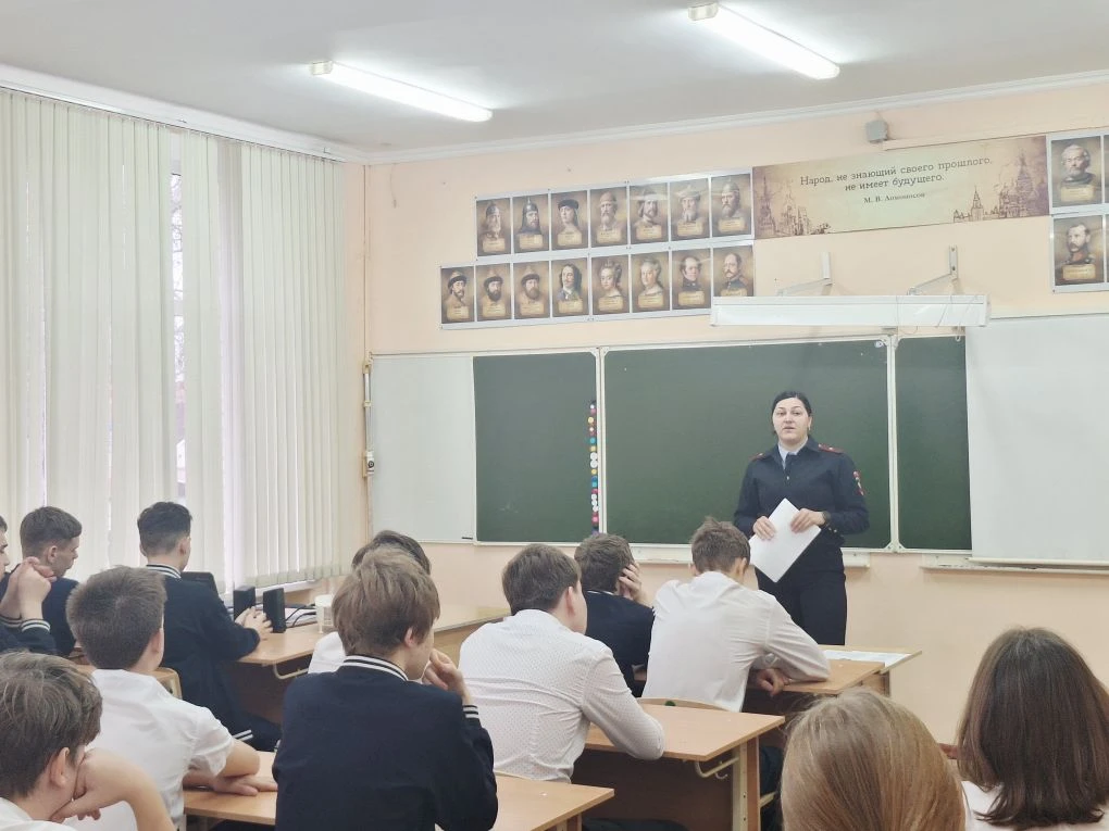 Сегодня, 17 февраля, в МБОУ СОШ № 11 им. Ф.Ф. Ушакова состоялась важная встреча со старшим оперуполномоченным ОНК Отдела МВД России по Кавказскому району майором полиции Бабаевой Лолой Эльдаровной
