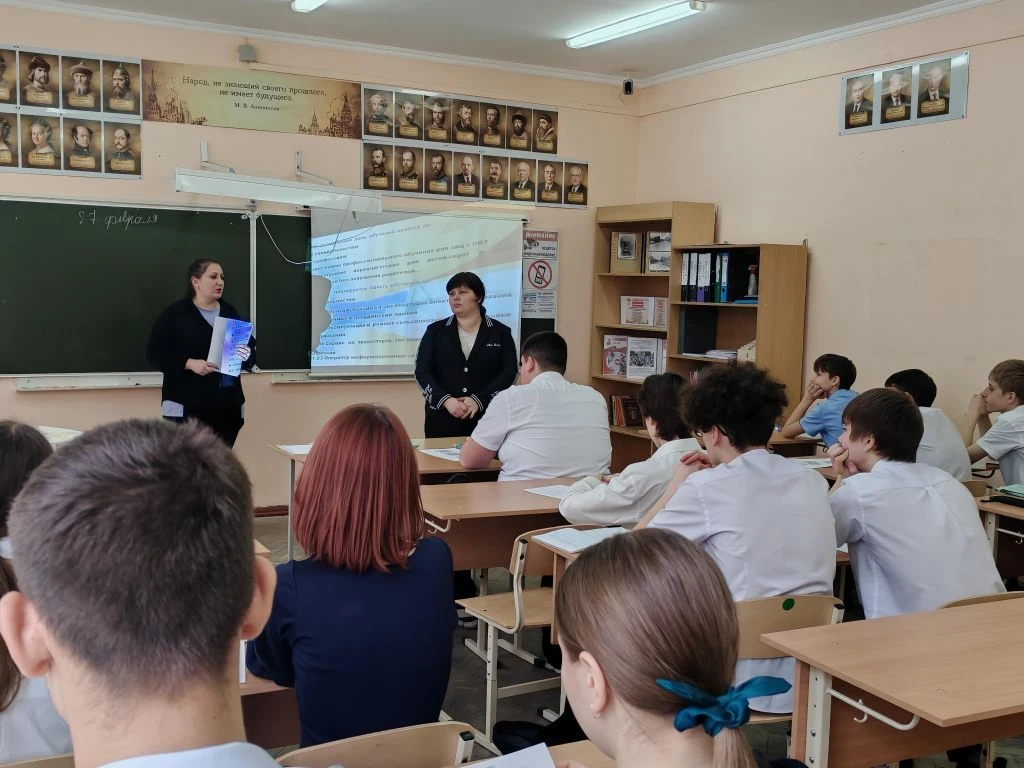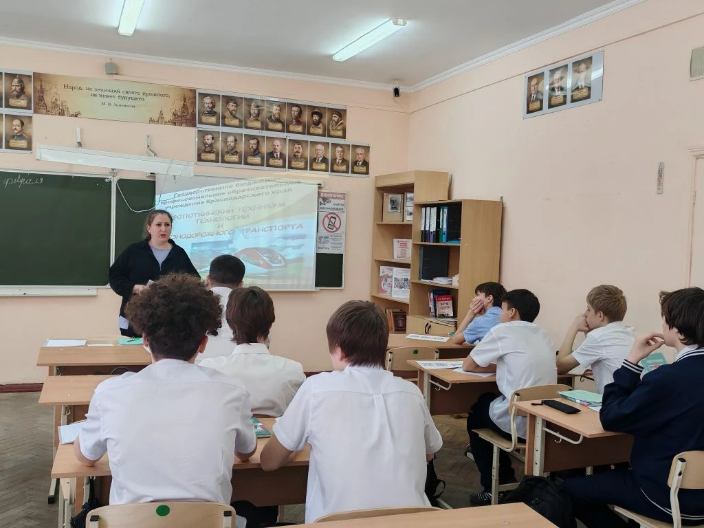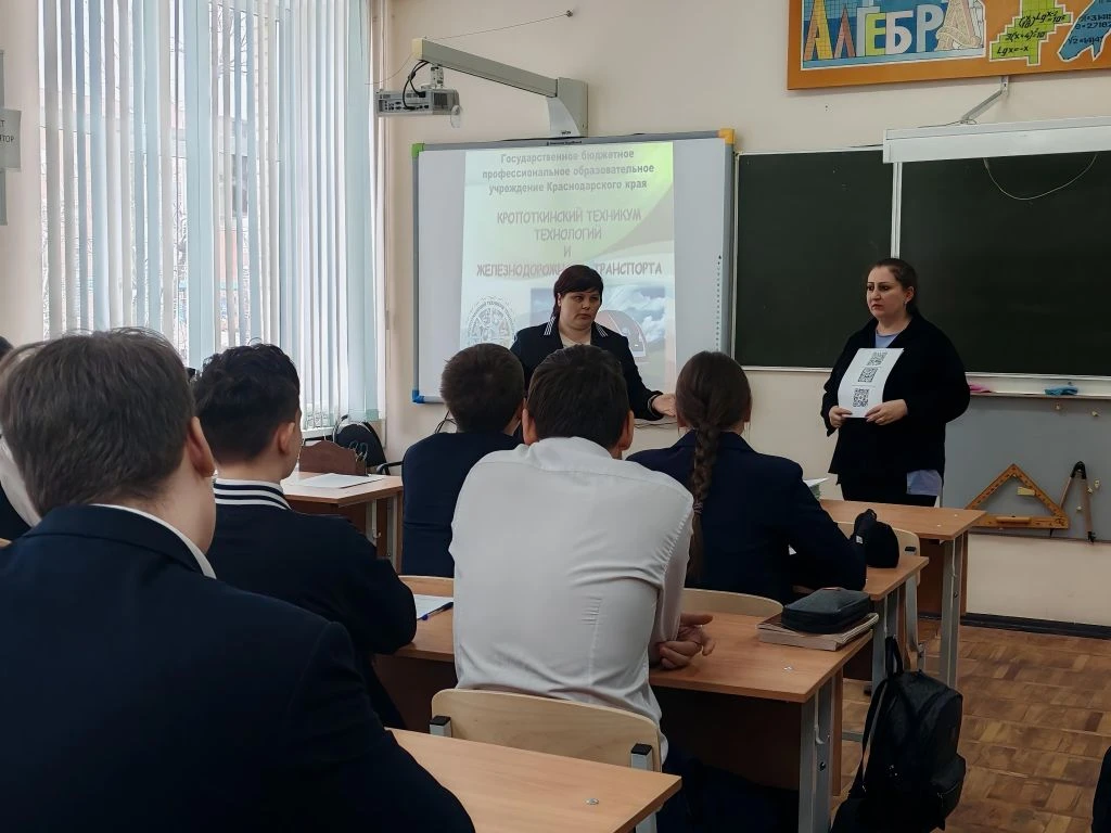 27 февраля в рамках реализации программы профминимума перед учащимися 9 классов МБОУ СОШ №11 им. Ф. Ф. Ушакова выступили представители Кропоткинского техникума технологий и железнодорожного транспорта.