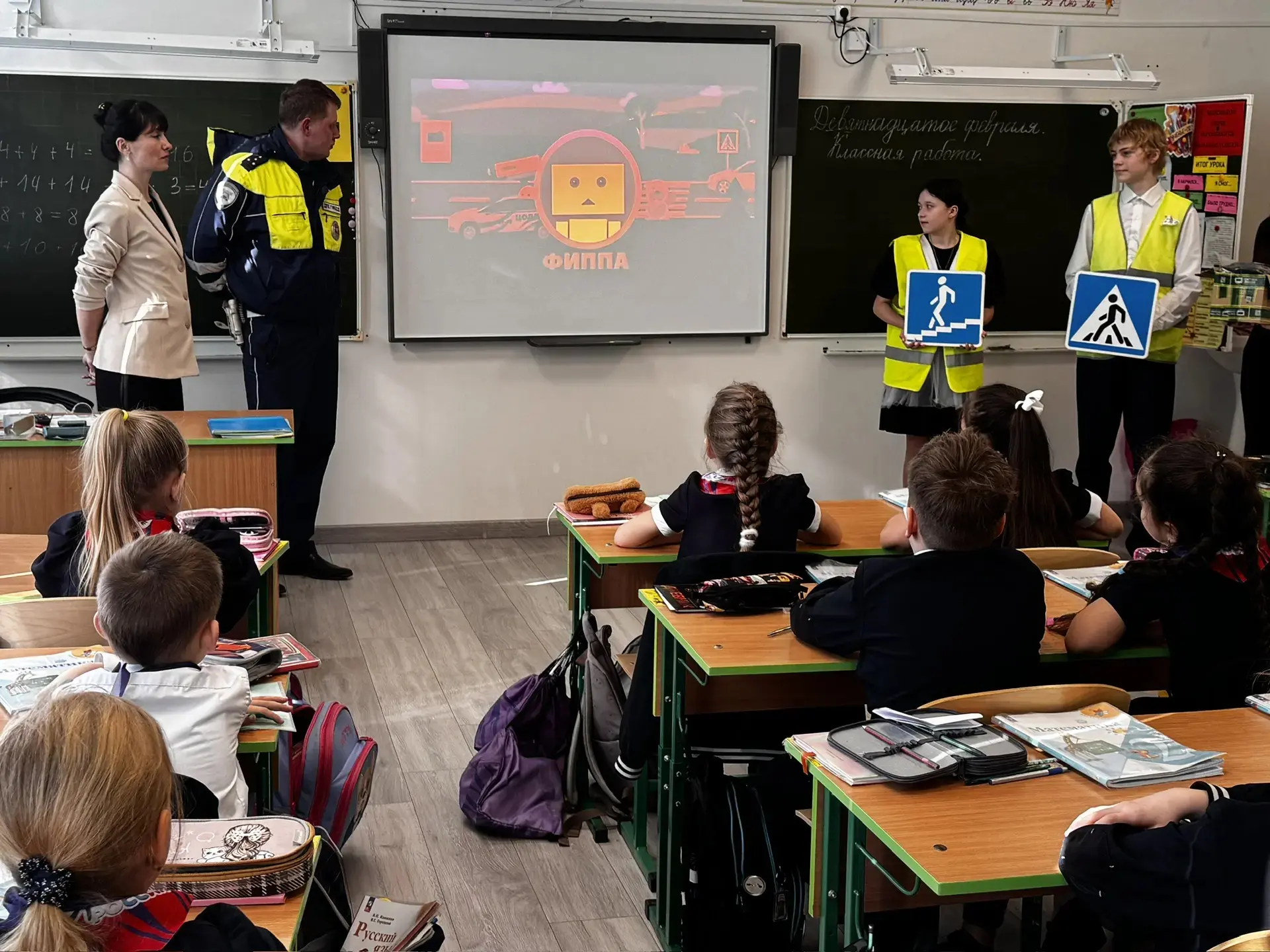 Сегодня, 26 февраля, для учащихся первых классов МБОУ СОШ № 11 им. Ф.Ф. Ушакова прошёл урок по правилам дорожного движения. Ребята узнали много полезного о том, как правильно вести себя на улице и переходить дорогу.