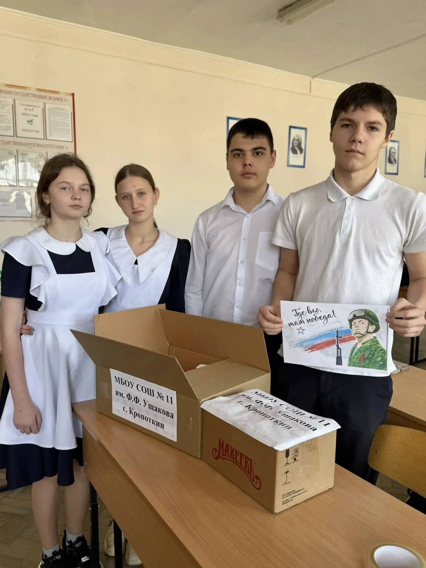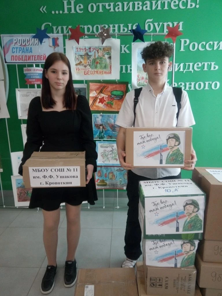 Учащиеся МБОУ СОШ № 11 им. Ф.Ф. Ушакова и их родители проявили активную гражданскую позицию и приняли участие в сборе гуманитарной помощи для защитников Отечества.
