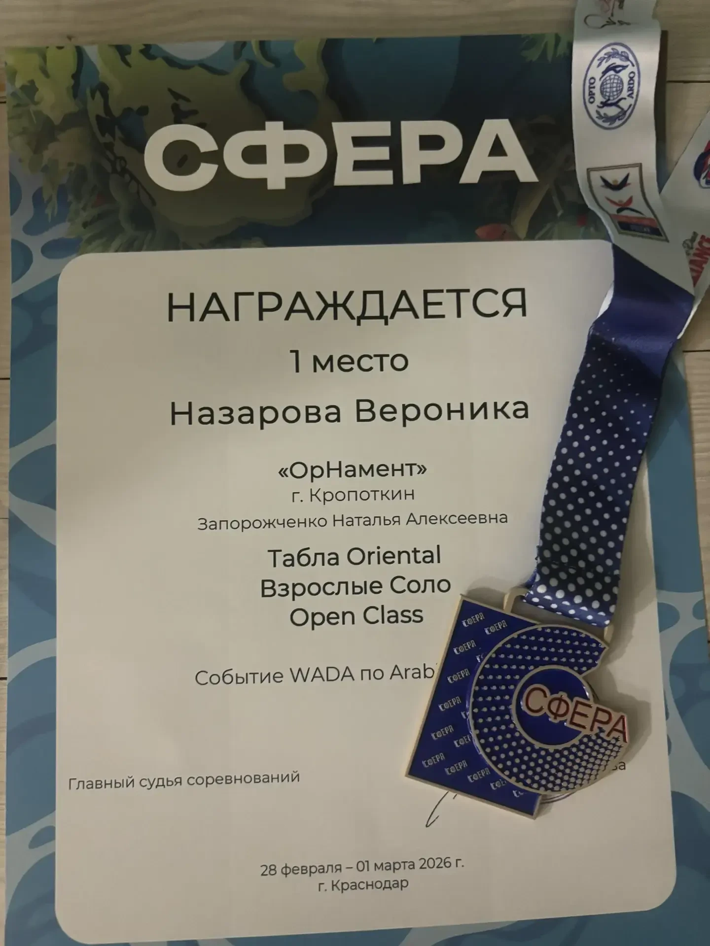 ✨ Среди множества талантливых конкурсантов особенно выделилась ученица 10 "Б" класса МБОУ СОШ № 11 им. Ф.Ф. Ушакова Назарова Вероника, завоевавшая заслуженное первое место в номинации "Табла Ориенталь"!