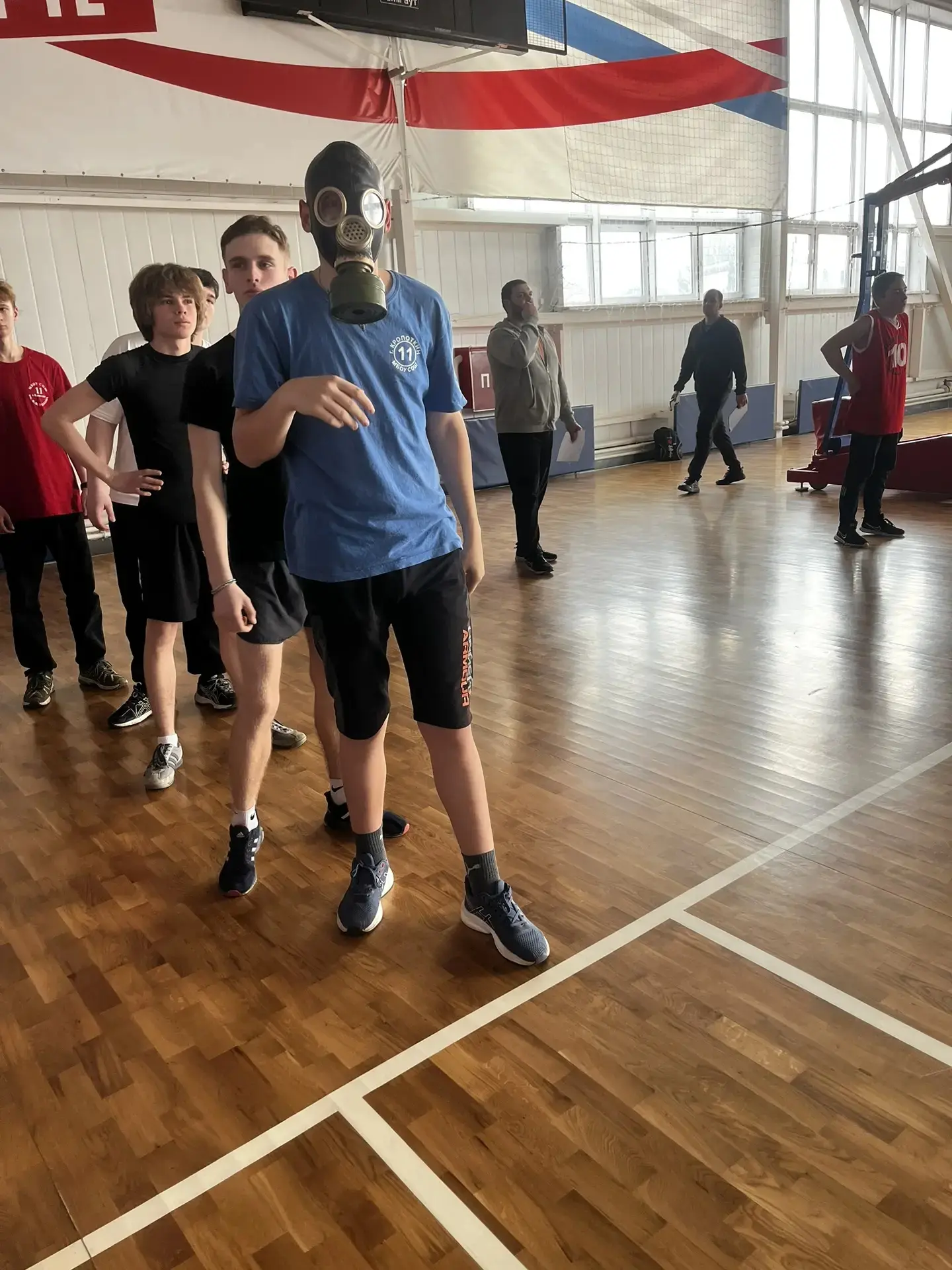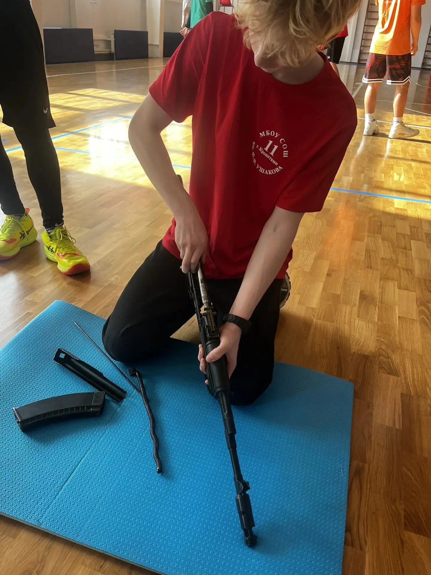 В спортивном комплексе "Олимп" юноши соревновались в меткости, ловкости, сборке и разборке автомата, а также в пользовании противогазом.