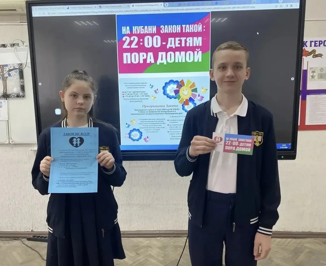 Сегодня, 17 февраля, в МБОУ СОШ № 11 имени Ф.Ф. Ушакова прошли классные часы, посвящённые вопросам соблюдения закона Краснодарского края № 1539. 🛡️