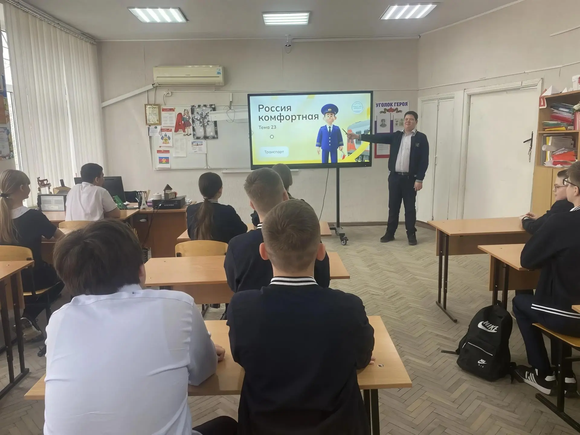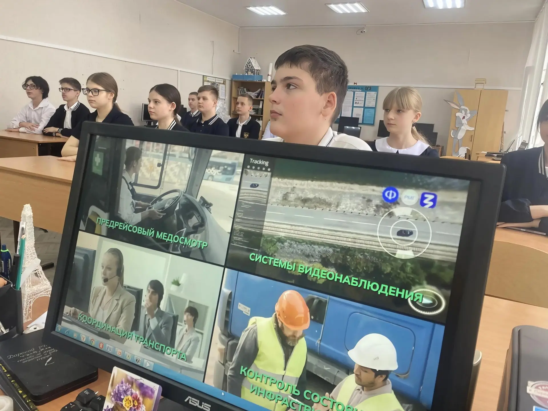 Учащиеся познакомились с системой транспортной инфраструктуры нашей страны. Они узнали, как функционирует транспортная система России, кто занимается проектировкой автомобилей, поездов и самолётов, чем занимаются инженеры - технологи, диспетчеры и эксперты по логистике. Ребята посмотрели видеоролики об отрасли, о профессиях, об образовании и обсудили их; сыграли в игры «Да и нет»; «Паспорт профессии». В конце занятия они прошли блиц-опрос, состоящий из пяти вопросов.