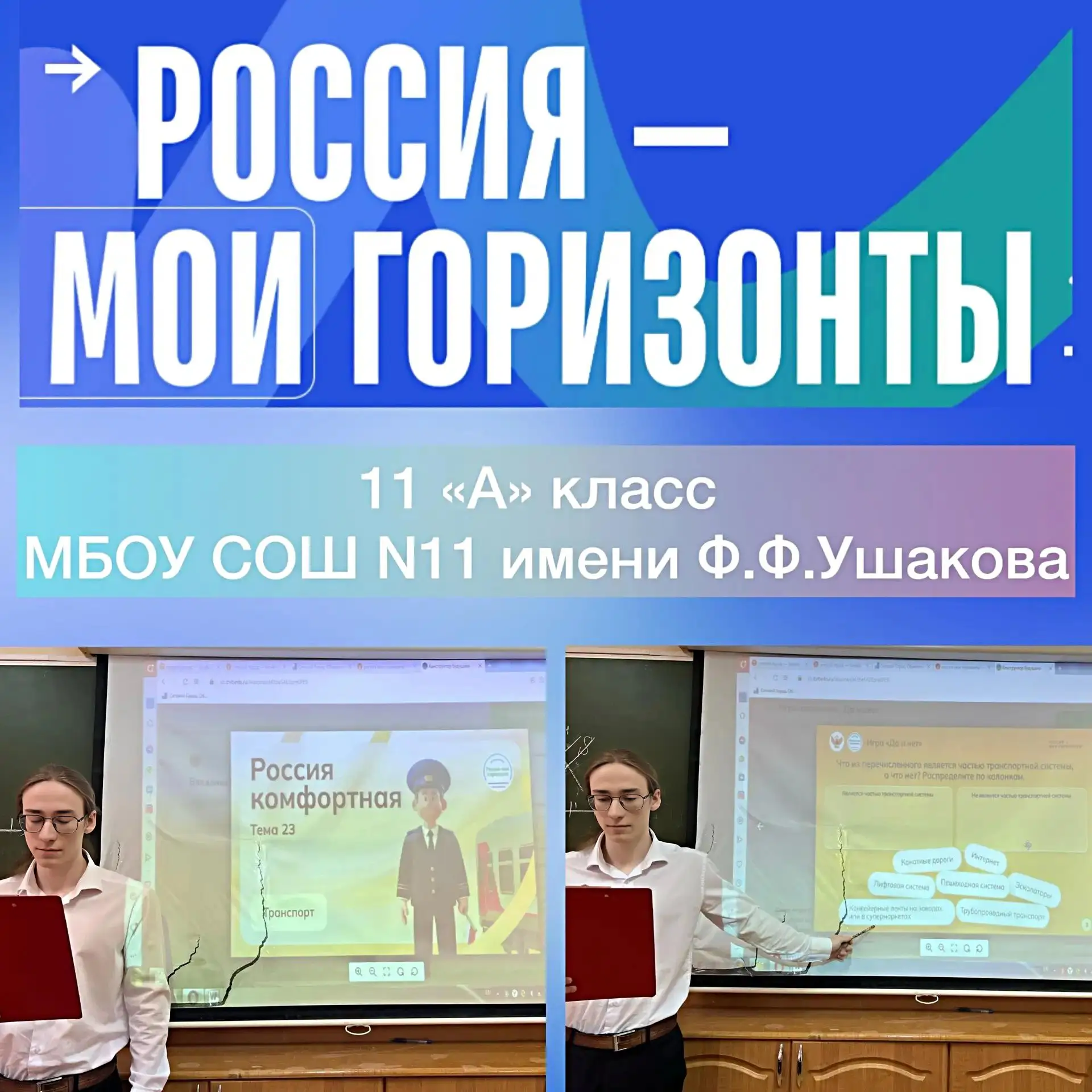 26 февраля в рамках внеурочной деятельности по курсу «Россия - мои горизонты» учащиеся 6 – 11 классов МБОУ СОШ №11 им. Ф. Ф. Ушакова приняли участие в занятиях «Россия комфортная: транспорт».