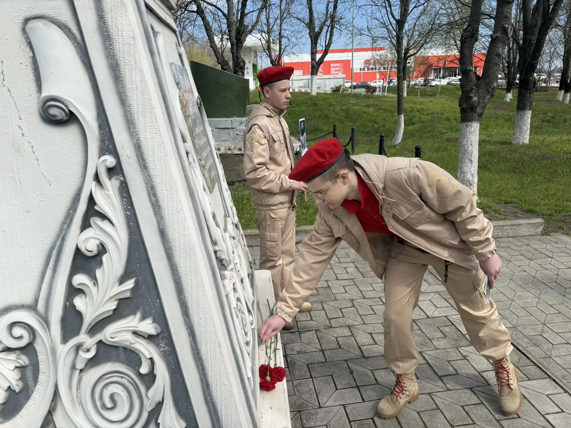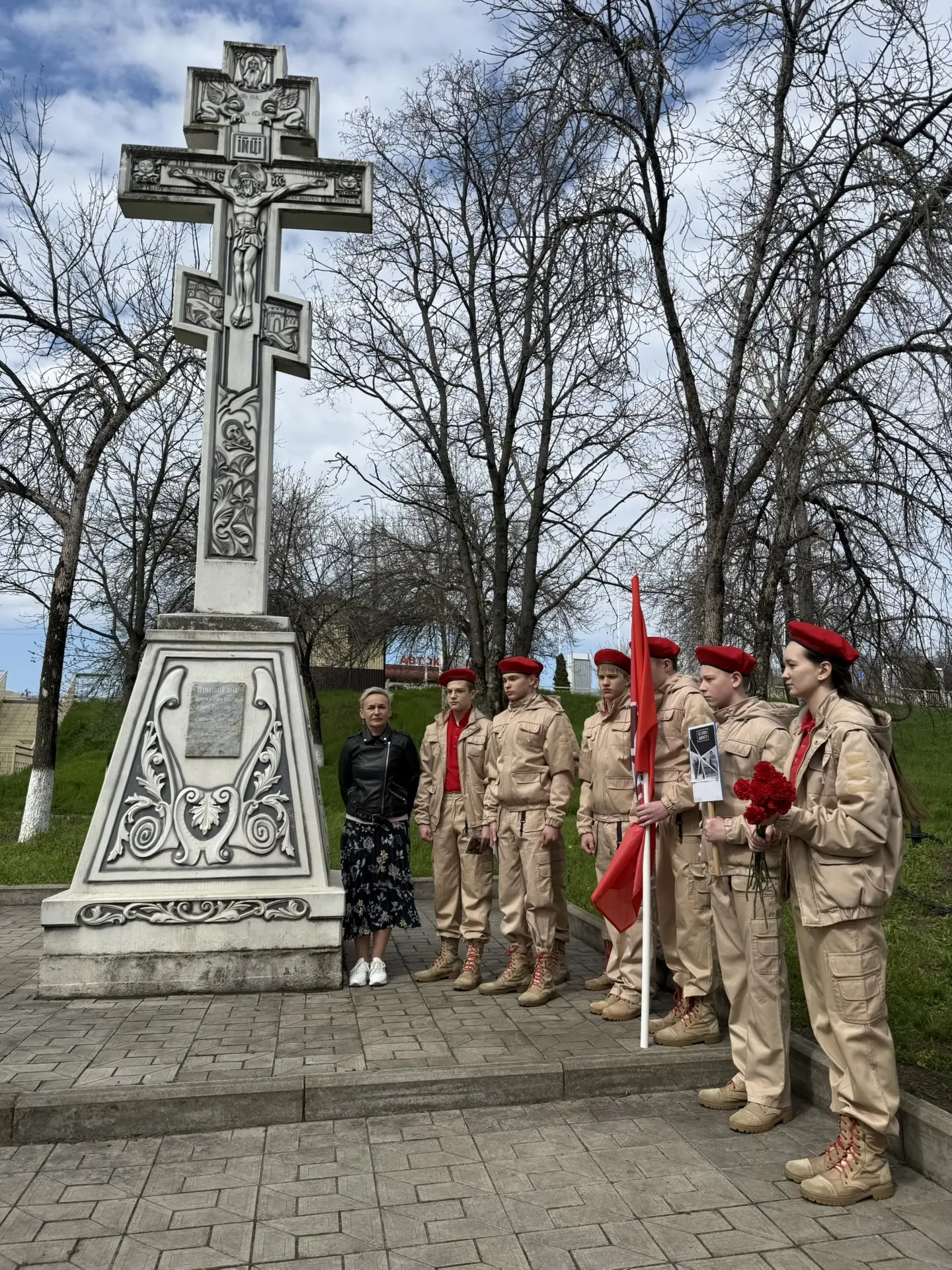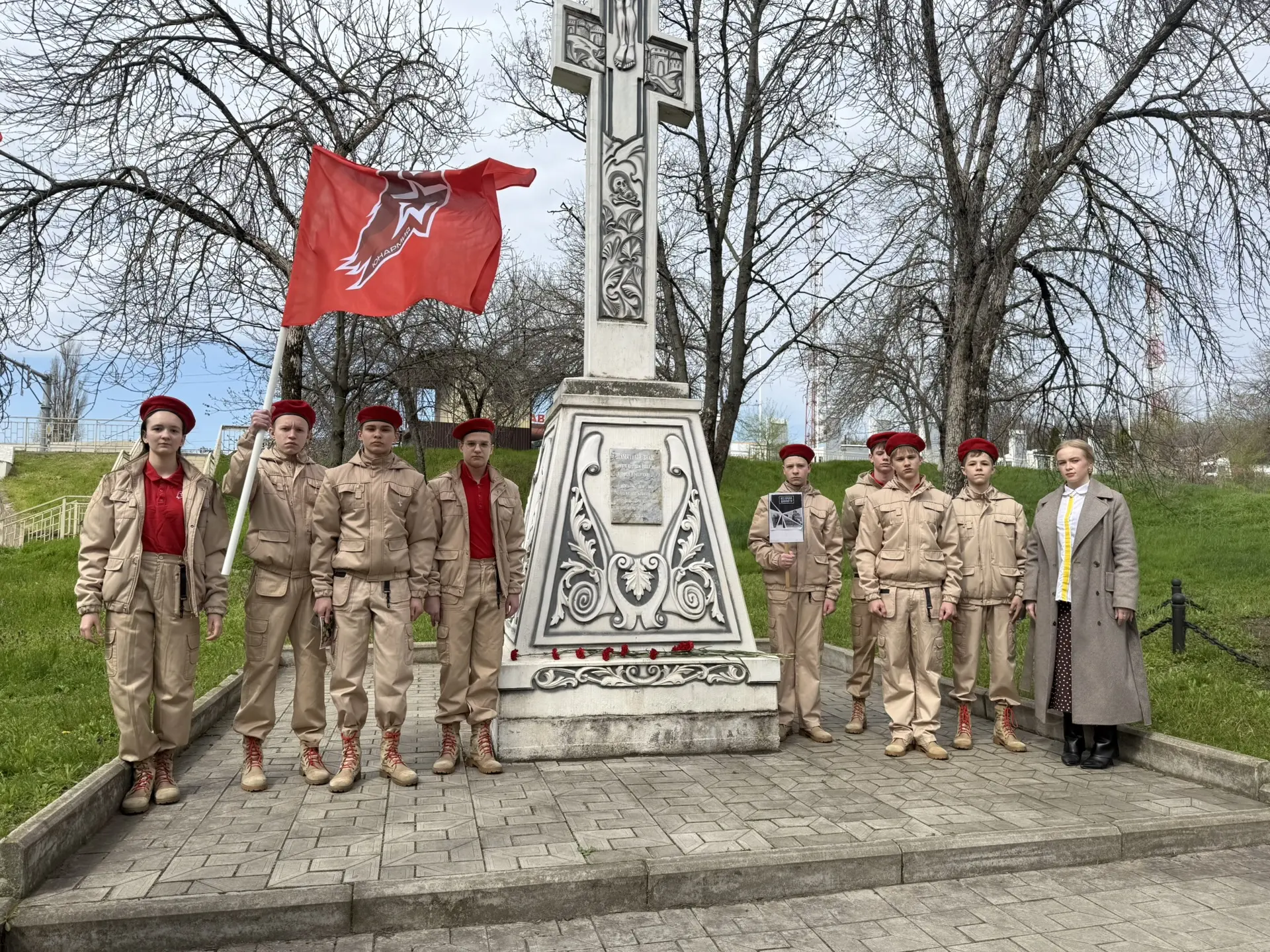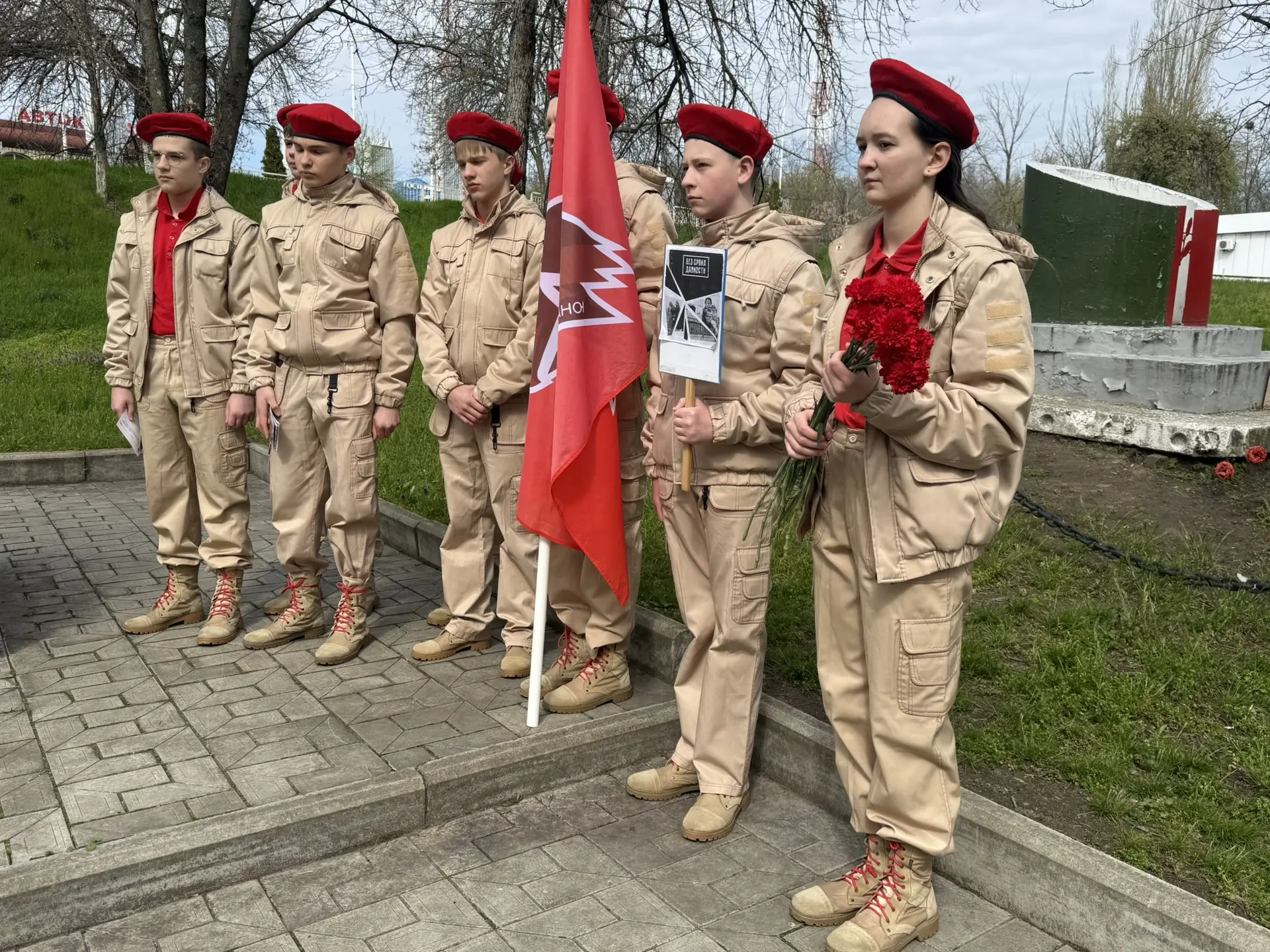 🎗️Ребята почтили память жертв геноцида советского народа минутой молчания и возложили цветы к памятнику.