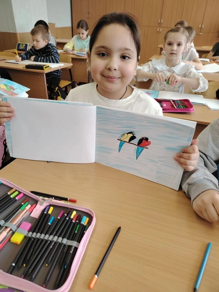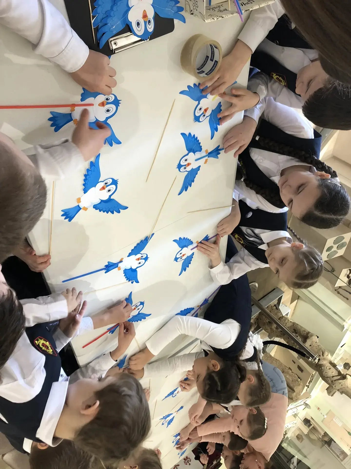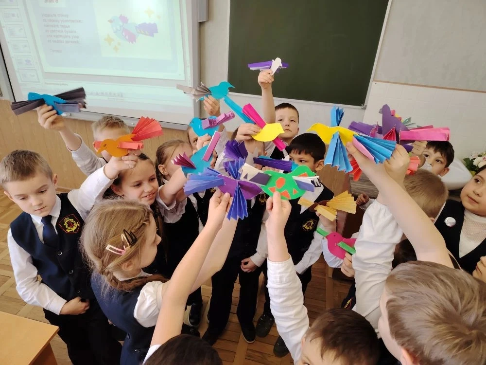 В итоге каждый ученик ушел домой с забавной птичкой на палочке!