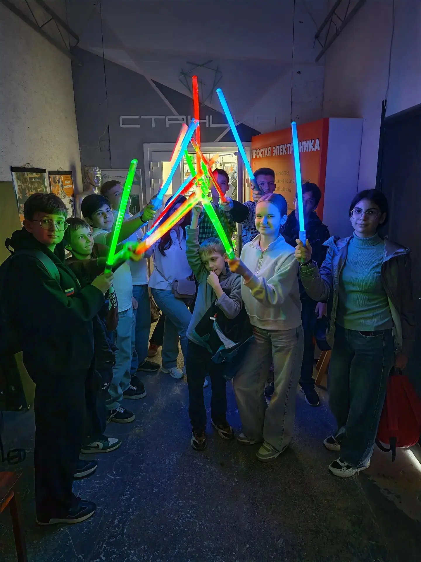 — Собрали настоящие световые мечи и заставили их светиться (выглядело эпично, особенно в полумраке мастерской)