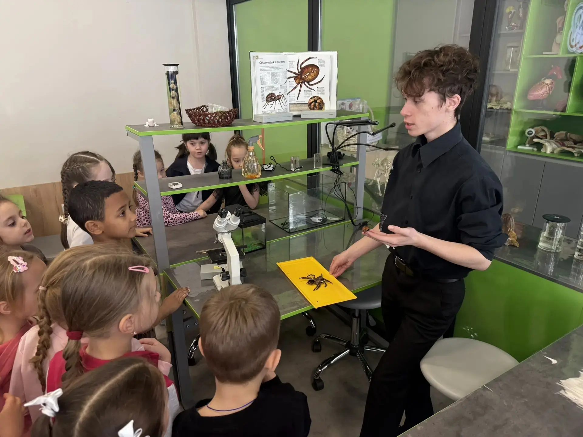 Не меньший интерес вызвал биокванториум. Здесь ребята погрузились в загадочный мир живых систем, познакомились с лабораторным оборудованием и узнали, как высокие технологии помогают изучать биологию и создавать новые экологичные материалы.
