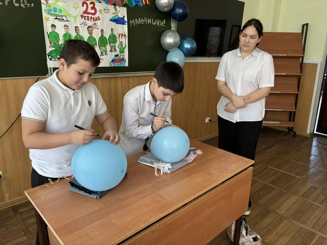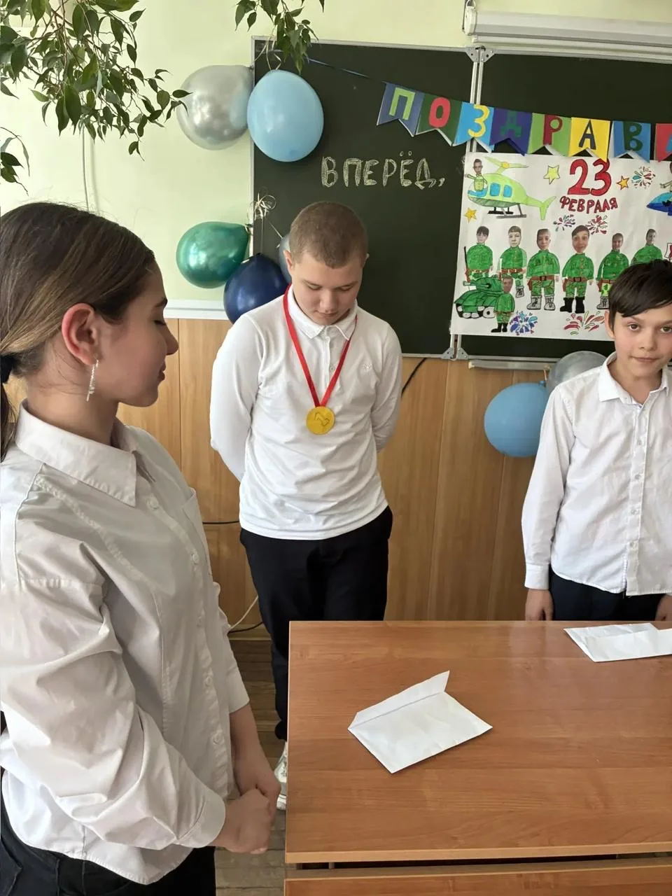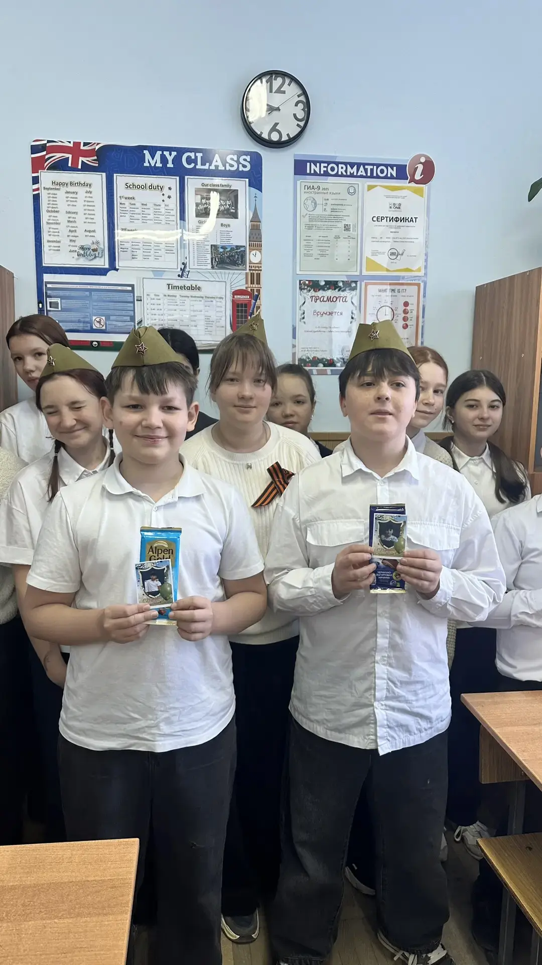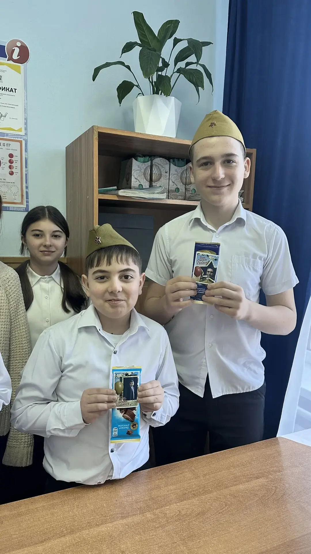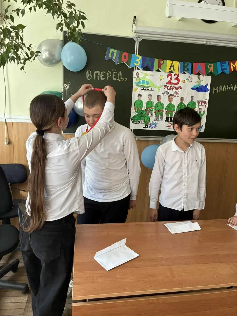 📌 Девочки тепло поздравили юных защитников (одноклассников) с 23 февраля, пожелав им расти сильными, смелыми, уверенными в себе, хорошо учиться, защищать слабых и уважать девочек !