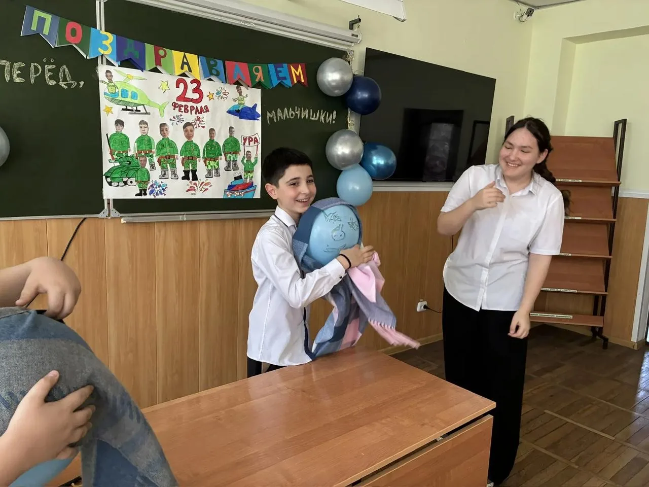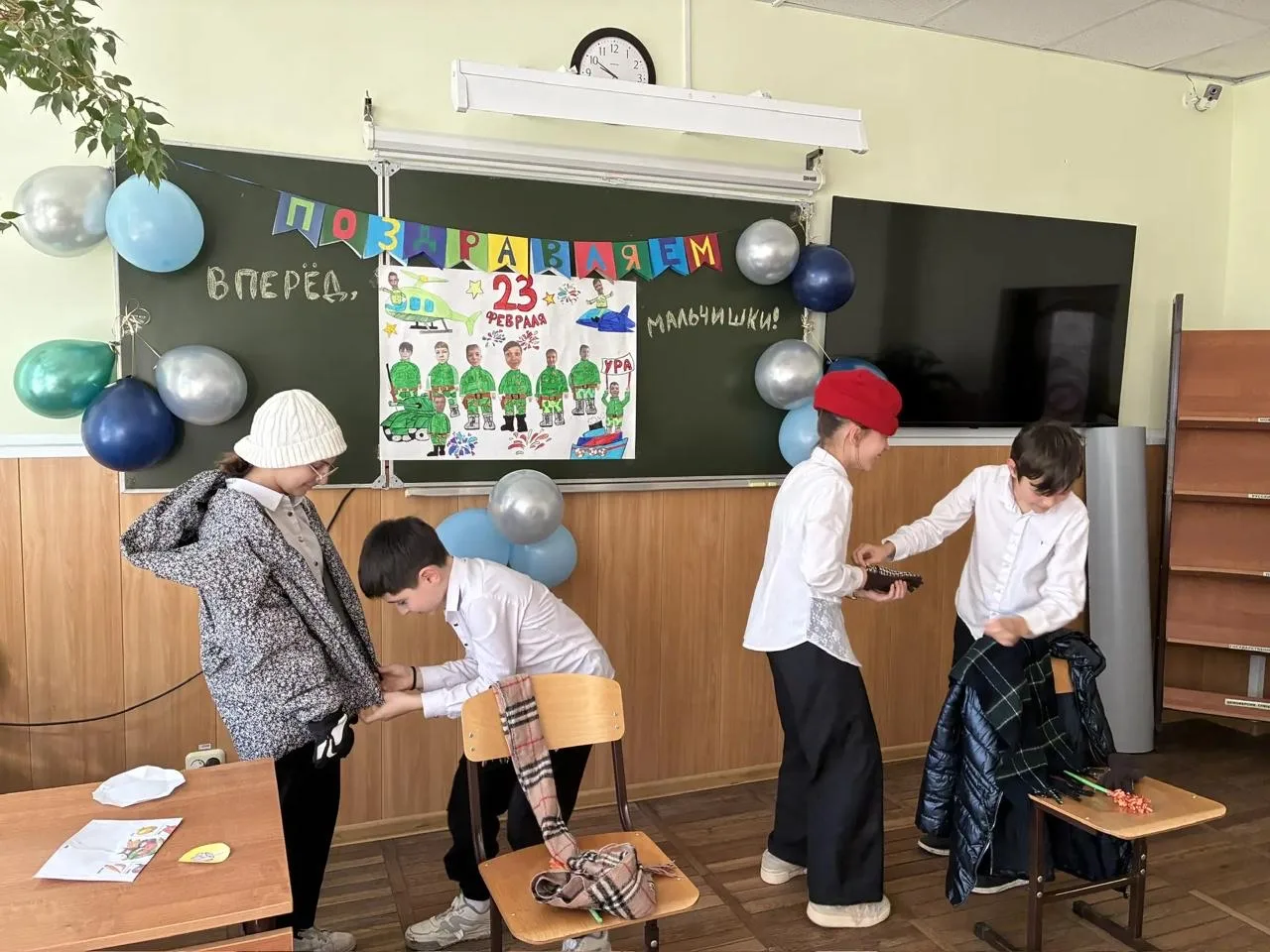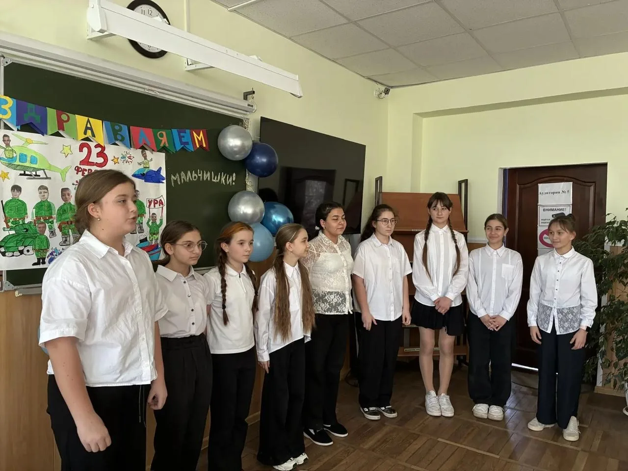 📌 Сегодня в 10 «А» классе (классный руководитель - Заркуа Ольга Николаевна) было особенно весело! Поздравляли замечательных мальчиков — будущих защитников.