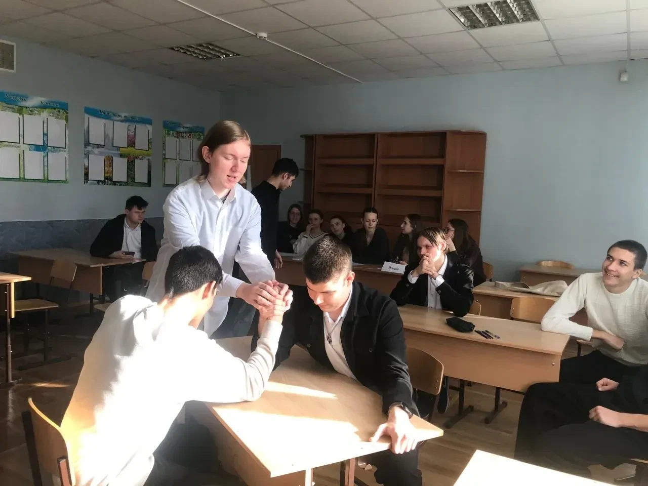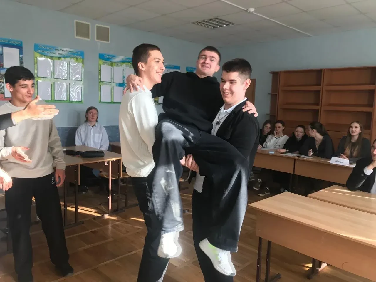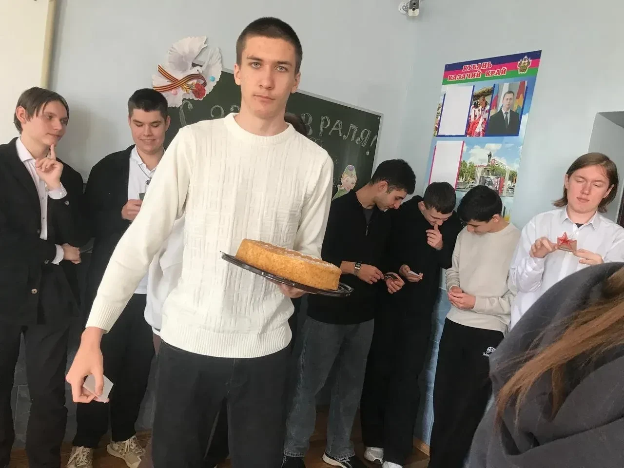 📌 Сегодня в 10 «А» классе (классный руководитель - Заркуа Ольга Николаевна) было особенно весело! Поздравляли замечательных мальчиков — будущих защитников.