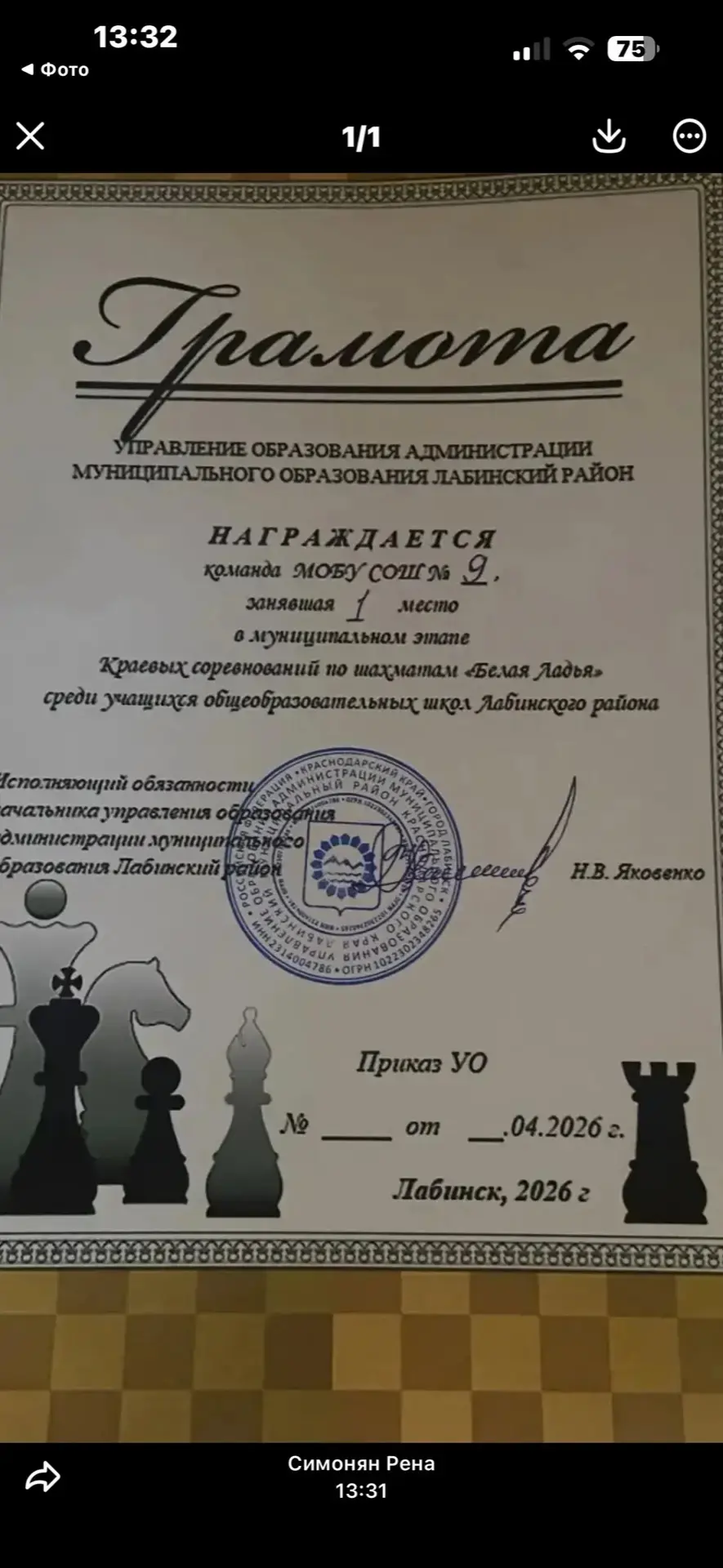 📌 В муниципальном этапе краевых соревнований по шахматам "Белая ладья" команда нашей школы стала победителем! Поздравляем участников команды и их наставника - Анжелу Карленовну Сафарян! Ура! Молодцы!😍😍😍