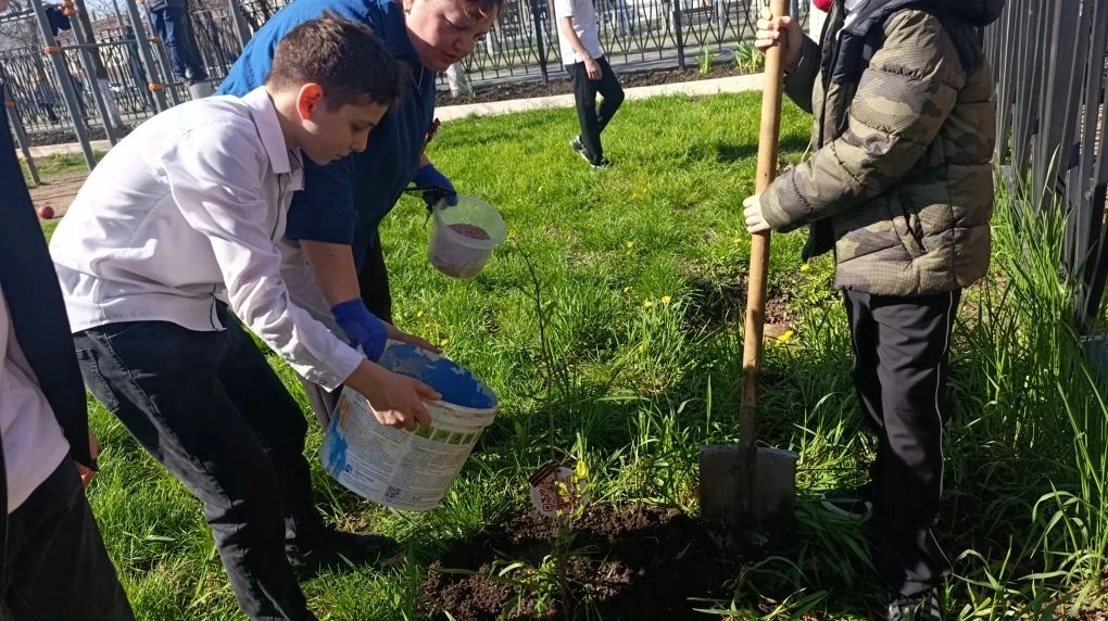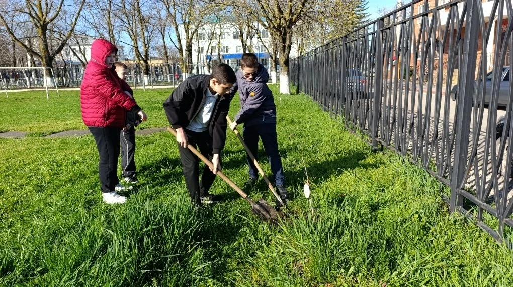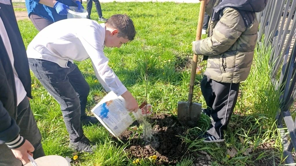 Ученики вместе с педагогами дружно взялись за дело: высадили молодые деревья, навели порядок на школьной территории и сделали наш двор ещё уютнее и зеленее. Каждый внёс вклад в общее дело, и результат получился по-настоящему впечатляющим!