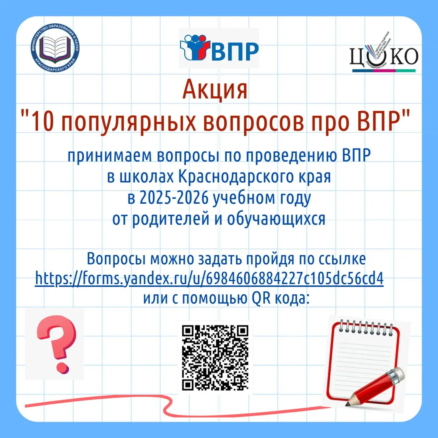 ✔️ В преддверии проведения ВПР стартовала Акция «10 популярных вопросов про ВПР».
