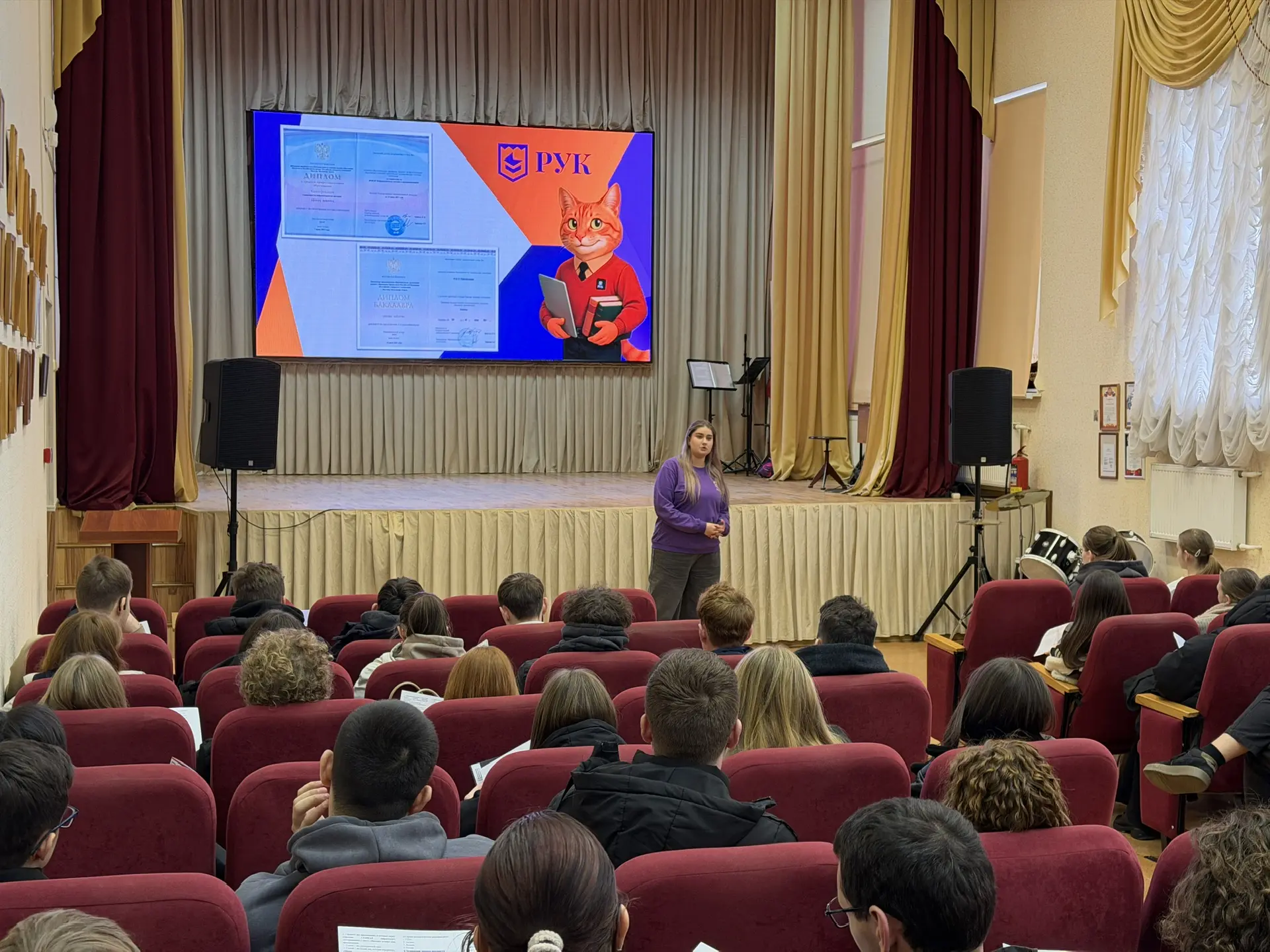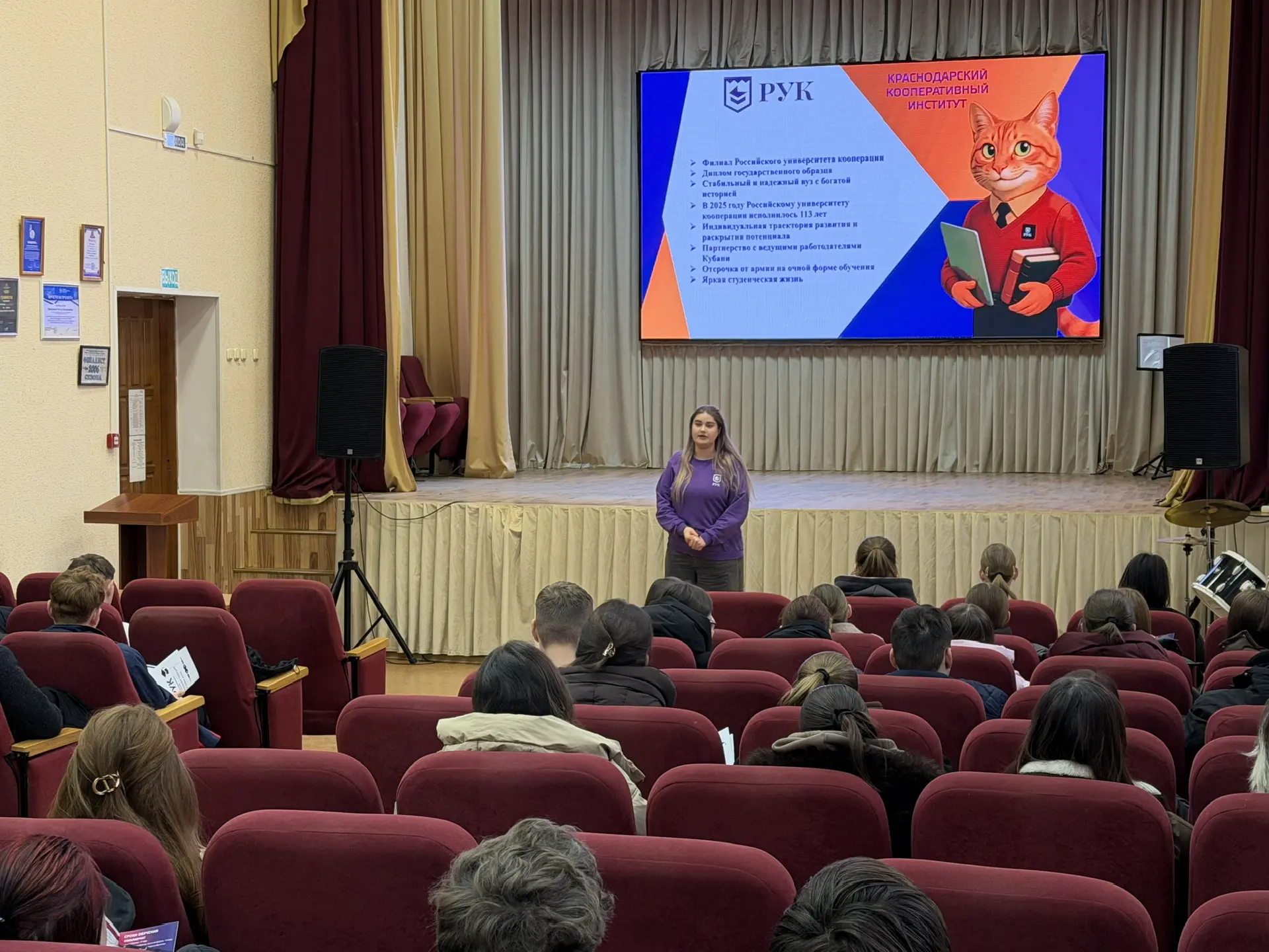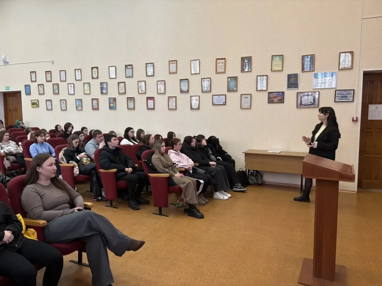 👩💻Ведущий специалист приемной комиссии Мельниченко Д.П. рассказала студентам о специальностях института, документах, необходимых для поступления, предварительном договоре и Днях открытых дверей для абитуриентов.